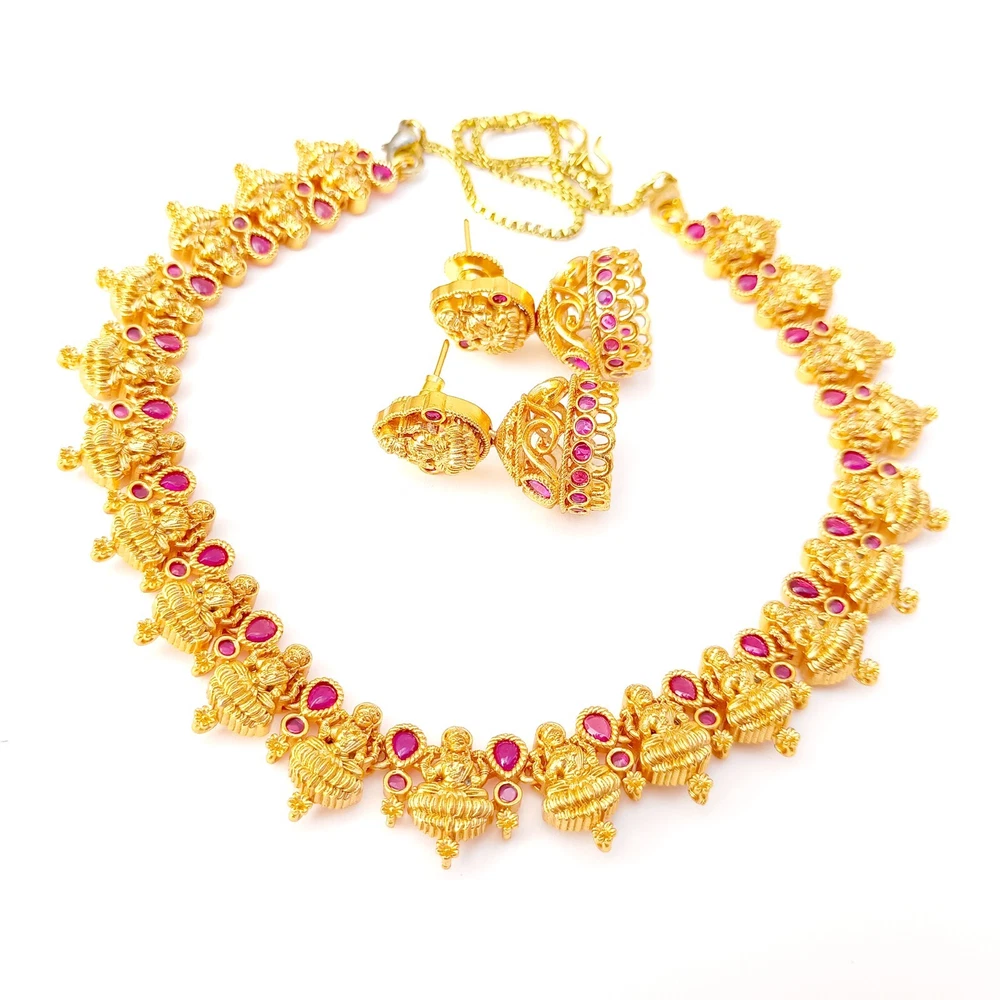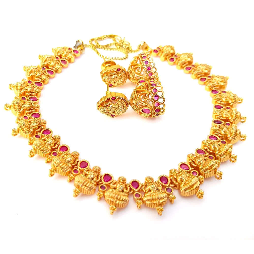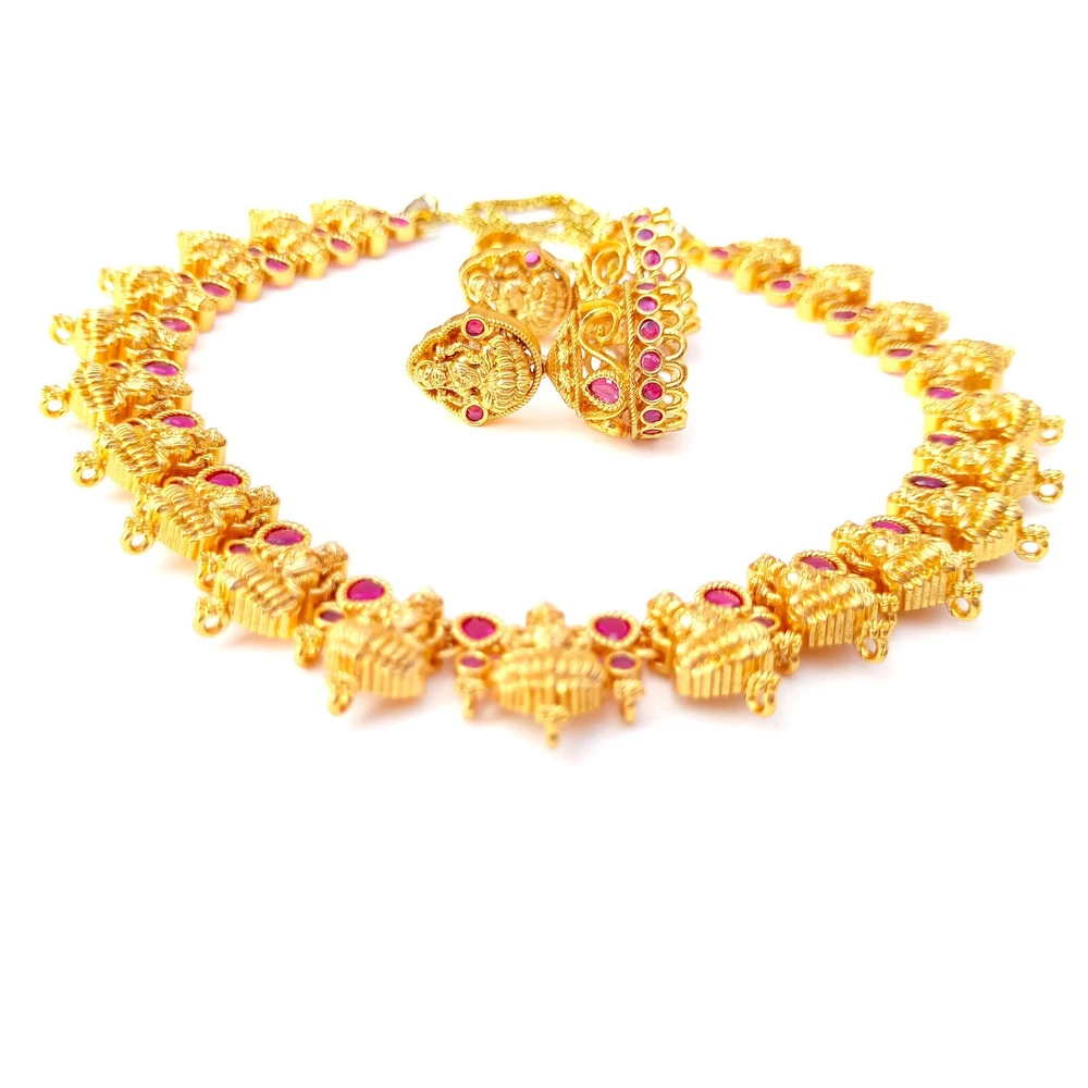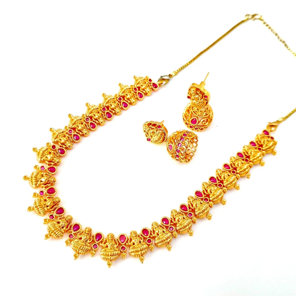 $ 52.8Premium Ruby Necklace jewelry, White plated Necklace, South Indian Necklace