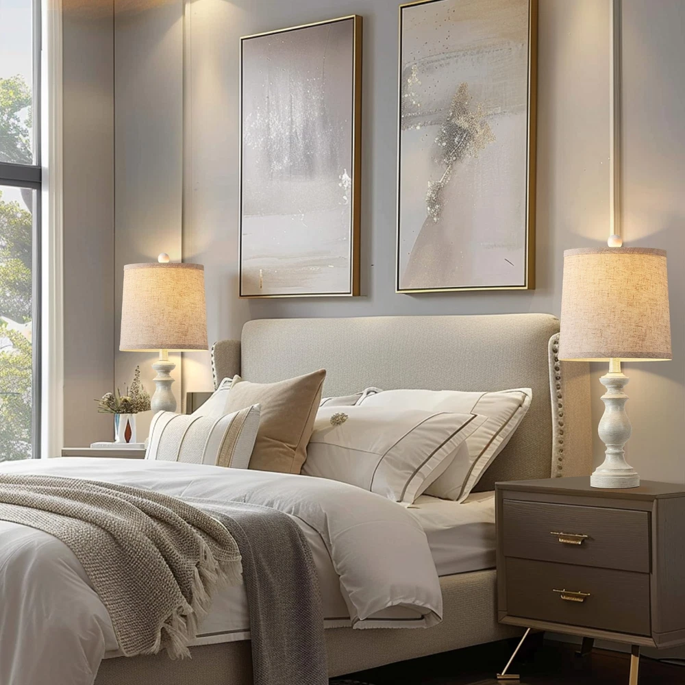 and elegant design: designed in a rustic farmhouse style, each table lamp features an antique finish for a more elaborate design. Beige tapered drum shades on top are the perfect finishing touch to these beautifully old-fashioned bedside lamps. It modern, contemporary, art decor, vintage, mid-century modern, and other decor schemes Visually pleasing: small lamp is designed for eye comfort. The shade of our bedside lamp is made of linen to ensure even and soft light distribution, protecting your eyes and creating a warm and cozy atmosphere in your home. Suitable for living rooms and bedrooms Choice for safety: we attach great importance to the quality of our table lamps during the production process. Made of reliable materials, this lamp is made to last, maintaining its gorgeous appearance for years. Each lamp uses a maximum 60-watt bulb (not included) Ideal gift option: enhance your home decor with our exquisite table lamps. The modern design adds character and warmth to your house, creating a cozy ambiance. Place these beautiful lamps on a nightstand or console table, they will effortlessly enhance the overall aesthetic. Perfect gift for family or friends on birthdays, Christmas, New Year and other celebration days Easy to assemble: assembling our table lamp sets is super easy. No tools are needed, take a few minutes to install all the parts together. The table lamps are constructed of reliable material which ensures long-lasting use. We stand after our products, If you have any questions about our products, please feel free to us. We will help within 24 hours
