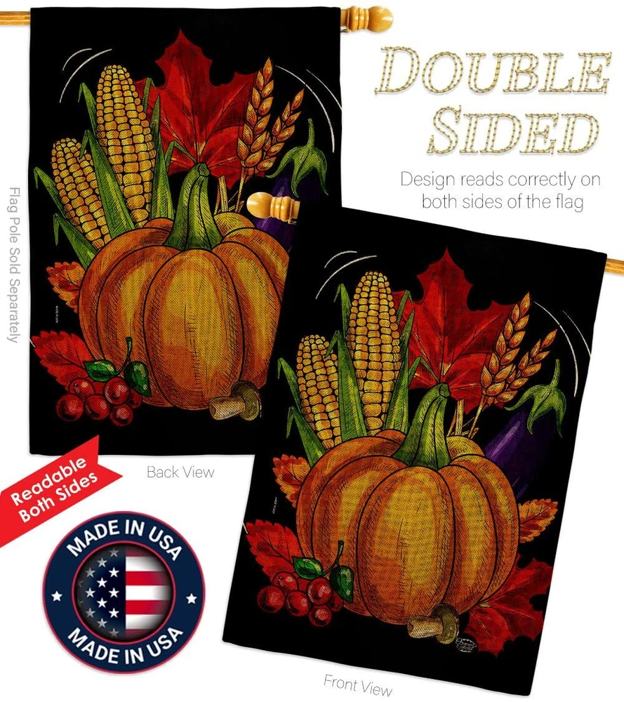 Harvest & Autumn Beautiful Large House Flags Pack - 2 SetsOrnament Collection have variety of House Flags Pack for all occasions. Uniquely design for hanging indoor or outdoor use. We are committed to offering you exceptional values. Our customers enjoy displaying our House Flags Pack for longer periods. Specification: Theme: Harvest & Autumn Size: House Flags Pack 28" x 40" Print: Double-Sided Readable: Readable Both Sides Material: Weather Resistant Double Burlap Stitching: Double Stitched Display: Vertical Hang Type: Sleeve Artist: © Ava Storey Special Features: Origin: Made In USAPackage Include: 2 pc x House Flag 28" x 40" Package Decorative FlagsFor more than a decade, we’ve been dedicated to manufacturing flags with no comparison in quality and beautiful designs. Our flags are made with our Guard material that is soft to the touch and designs can be read correctly on the flag. A feature that our customers will love. We are committed to using eco-friendly inks that won’t leave a foot print in our environment. MPN: OC-HA-HP-192654-IP-DBAE-D-US21-OC 92654 92654 PROUDLY Made In USA - Package And Product Designed In California PURCHASE WITH CONFIDENCE - From 's US Authorized Resellers MADE OF DURABLE - 100% Thick Double Burlap Fabric construction helps resist the wear and tear from frequent use TEXT READABLE BOTH SIDES - House Flags Pack Double-Sided Print DURABLE FLAG - Double stitching panels on multiple rows and high quality Sleeve to provide lasting strength VIBRANT COLORS - With UV-Resistant Maintains Its Colors All Season Long FEATURES - Sleeve Hanger fits standard Banner/Flagpole, Bracket, Arbors or stand, SOLD Separately