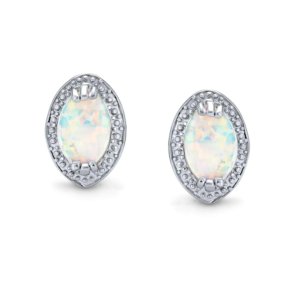 Traditional Victorian Style White Teardrop Oval Created Opal Stud Earrings For Women .925 Sterling Silver Halo October Birthstone Product Details Color: Clear Brand: Bling Jewelry MPN: XNY-ED0088-PAR UPC: 640626729147 EAN: 0640626729147 Is Discontinued By Manufacturer : No Product Dimensions : 0.55 x 0.47 x 0.55 inches; 0.29 ounces Item model number : XNY-ED0088-PAR Department : womens Date First Available : March 1, 2023 Manufacturer : Bling Jewelry Brand, Seller, or Collection Name: Bling Jewelry Metal stamp: 925 Metal: Rhodium-plated silver Material: Gemstone, Metal Gem Type: Opal Minimum total gem weight: 2.00 carats Setting: Halo Item Length: 0.55 inches Width: 0.39 inches Length: 0.55 inches Back finding: Push Back Resizable: No Number of stones: 2 Stone Weight: 1.50 carats Model number: XNY-ED0088 Size per pearl: not-applicable These stunning Victorian Style stud earrings feature enchanting colors, making these Vintage Style earrings breathtaking. A dazzling oval Created White Opal gemstone sits in a 6 prong setting with elegant beaded detailing. Intricate cut-out designs on the sides give these chic Victorian Style Created Opal stud earrings a sophisticated look. Crafted from .925 sterling silver and rhodium plated to resist tarnish, each Created Opal earring sits on a secure friction back post.