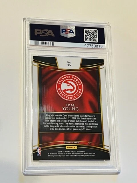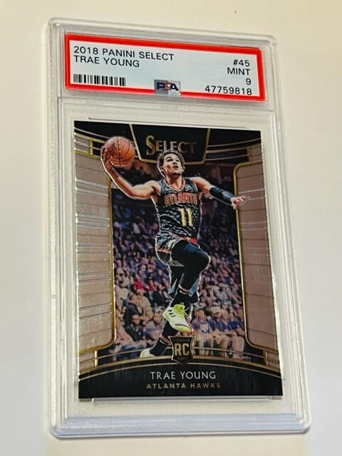 Absolutely awesome and highly collectible RARE 2018-19 Panini Select Trae Young Rookie card Graded a PSA 9 Mint. See all pictures for amazing condition, size, and detail. There are absolutely no returns on graded sports cards as you know exactly what you are getting because it is professionally graded and the market for sports cards changes literally on a daily basis. Check out my store for some of the rarest vintage collectibles online from all eras. Thanks for looking and have a great day! :)