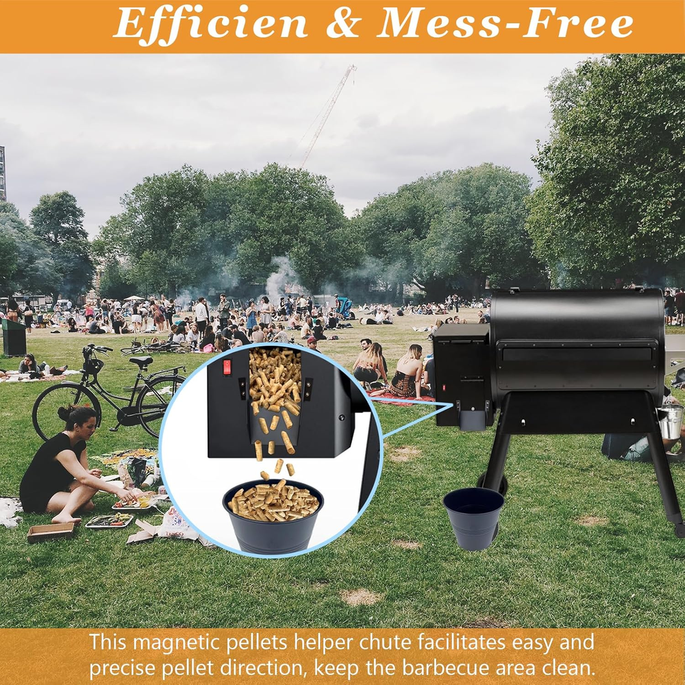 Fast Shipping On All Items 30 Days Money Guarantee Customer Support Excellent Service 100% Satisfaction Satisfaction Guaranteed Traeger Pellet Helper Chute - Magnetic Pellet Feeder for Pellet Smoker, Accessories for Ironwood 885, Pro Series 34, Pro 780 Grills Specification Item model number -1 Power Source No power required Color Black Item Weight 6.4 ounces Outer Material Carbon Steel Fuel Type Wood Model Name Pellet Helper Chute for Traeger Pellets Grill Form Factor elongated Product Dimensions 3 x 3 x 0.5 inches 3.0 inches x 3.0 inches x 0.5 inches. Weight: 6.4 oz Item Description 【Essential Pellet Auxiliary Chute】Tired of scattered wood pellets while cleaning your Grill? This outdoor grill pellet auxiliary chute is an accessory specially designed for the barbecue grill to discharge wood chips, The wood pellets can be easily gathered and slid into the bucket, No need to waste time cleaning up the fallen pellets. 【Easy to install】This pellets helper chute is easy to use. When using, just install the chute under the sawdust particle discharge port of the grill. Pellets helper chute magnetic can bear more than 3kg/6.6 ounces, which can be perfectly Fits the discharge port to easily clean sawdust particles. 【Maintain Cleanliness】Keep your grilling area tidy and avoid wasting pellets with this Magnetic Pellet Helper Chute accessory. It is also equipped with a cleaning brush to clean the magnetic pellet helper chute and keep the magnetic pellet Helper chute clean and tidy. Enjoy grilling without worrying. 【High quality materials】The pellets helper chute is made of aluminum alloy material, strong and reliable. It will not be damaged by impact or high-frequency use, ensuring a reliable and long-lasting solution for your pellet cleanup needs. 【Compatible】This barbecue stove accessory is suitable for various types of traeger grill barbecue stoves, with Traeger Ironwood 885, pro series 34, pro series 22, pro D2 575, pro 780, ironwood 650, centre-22-34. Product description About us We offer the best prices around on high quality products. Our E-store includes media such as books, movies, music and games while offering electronics, toys, sporting apparel, clothing, tools, general home, garden items and more. Shipping We are always working hard to ensure your package arrives as soon as possible. Please understand that some factors like weather, high postal traffic, and the performance of shipping companies are outside of our control. We offer free shipping to the lower 48 states and ship within 2-3 business days of payment, usually sooner. We do not accept P.O. Boxes. Please provide a physical address. For shipping outside of the continental USA, we only use eBay's Global Shipping Program.The item is shipped to KY and then sent to the rest of the world. International customers are responsible for all duties and taxes. Continue to check out to calculate costs for shipping the item to your country. Messages regarding eBay's Global Shipping Program MUST be directed at eBay EXCLUSIVELY. Returns We offer a 30-Day Return Policy on items in which you are not completely satisfied with. You have the option of a full-refund or an exchange of the item. No returns are available on items shipped outside of the USA Satisfaction We try over very best to make sure every customer is completely satisfied. If there's a problem, message us! We're happy to help. Payment Options Shop With Confidence