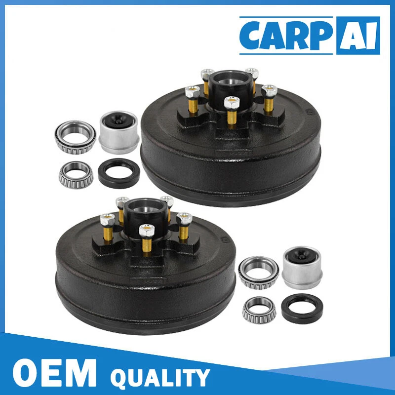 Drum feature: 5 on 5" bolt pattern 5 x 1/2"-20 studs installed 2 x bearing races installed Replace part #. 008-249-07, 84557 Works on Dexter and other brands 3500 lbs axle in the market Kit include: 5 on 5 brake drums 2x L68149 inner cone bearings 2 x L44649 outer cone bearings 2 x bearing races installed 2 x Grease seals 1.719"x 2.565" 2 x 1.98" E Z lube dust caps w/ rubber plug 10 x cone wheel nuts 1/2-20" thread