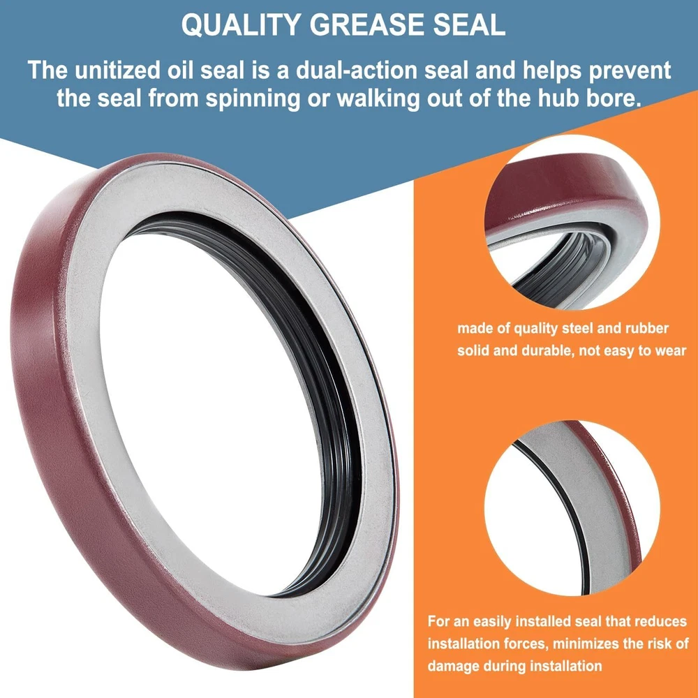 WIDE APPLICATION: The 370150BGO trailer wheel hub oil seals kit is compatible with Dexter axles 9K-10K axle capacity, and also fits heavy-duty trailer hubs. DIMENSION: The unitized trailer oil seal has an inner diameter of 2.875 inches and an outer diameter of 3.88 inches (I.D. 2.875'' x O.D. 3.880''). Compatible with Dexter 9k and 10k general duty hubs, but you will want to check your trailer hub and seal dimensions and seal numbers as well to ensure you are purchasing the correct seals for replacement. SUPERIOR SEALING PERFORMANCE: The unitized oil seals kit is a dual-action seal, the outer part of the seal connects to the hub and remains fixed in place, while the inner part of the seal remains fixed to the spindle and rotates. This makes the seal better protect the hub's bearings and oil from intrusion by water, dust, dirt, or other intrusive materials. MATERIAL: The trailer wheel hub unitized oil seal is made of quality steel and rubber. The unitized oil seal is a dual-action seal and helps prevent the seal from spinning or walking out of the hub bore. Satisfaction Guarantee-- 100% satisfaction guarantee. Please feel free to contact us if you have any questions about our product. On Dec 26, 2024 at 13:35:48 PST, seller added the following information: