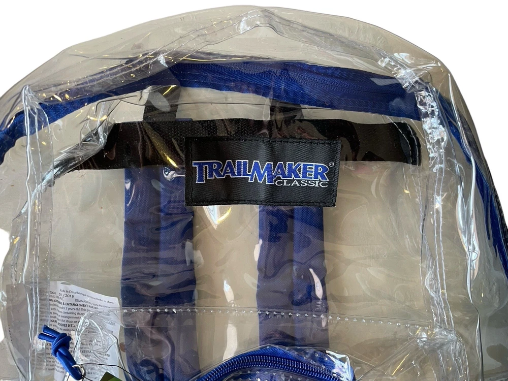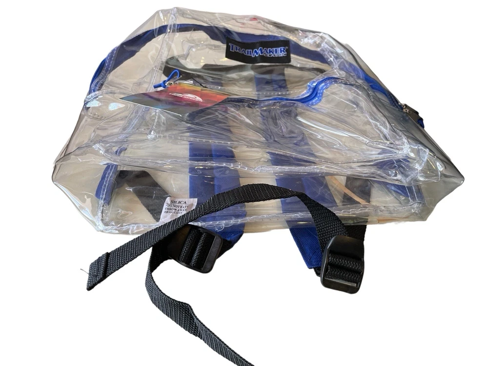 Trailmaker Back Pack Clear Plastic Clear Blue Trim For School, Work, Travel NWT