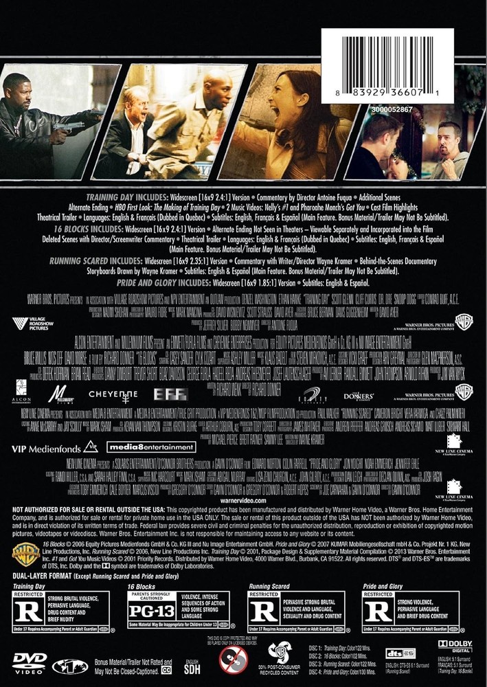 Immerse yourself in a gripping collection of cinematic gems with the "4 Film Favorites: Corruption Collection" DVD set. Featuring the compelling performances of Denzel Washington, this anthology includes intense dramas that explore the morally ambiguous landscapes of law enforcement and justice. The pack features a quartet of films, each offering a unique narrative and a high-stakes scenario that is sure to captivate and provoke thought. With English language tracks and rated R for mature audiences, these Warner Home Video releases promise a potent combination of intensity and storytelling. Training Day Pride & Glory Running Scared 16 Blocks