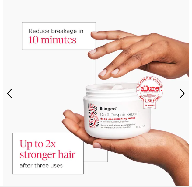 What it is: A 15X award-winning intensely conditioning mask that delivers a balance of protein and moisture to help support and strengthen dry, damaged hair. Key Benefits: - Protein-rich and moisturizing ingredients strengthen hair and help prevent future damage - Decadently creamy mask leaves hair soft and silky without weighing it down - Created for dry, damaged, brittle, or over-processed hair of all hair types and textures Highlighted Ingredients: - Plant Proteins: Replenish missing keratin molecules to strengthen and care for the hair shaft. - Algae Extract: Provides a potent dose of antioxidants to help nourish and protect hair. - Rosehip and Sweet Almond Oils: Provide essential fatty acids that lock in moisture and help prevent frizz. What Else You Need to Know: Briogeo’s rich, intensely conditioning mask is 97 percent naturally derived and scientifically shown to reduce hair breakage in ten minutes and strengthen hair up to 2X after three uses. It is silicone-free, vegan, cruelty-free, and Leaping Bunny certified. Clinical Results: - Reduces hair breakage in 10 minutes - Up to 2X stronger hair after 3 uses
