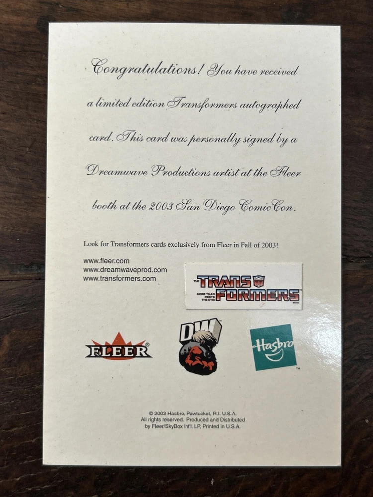 Transformers 2003 SDCC Print Signed by Pat Lee DW Hasbro Fleer Optimus Prime