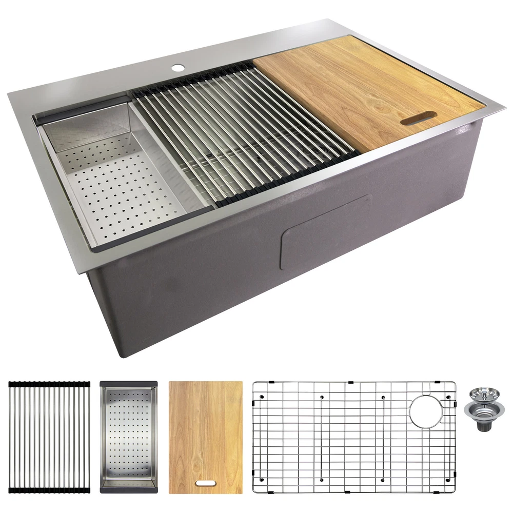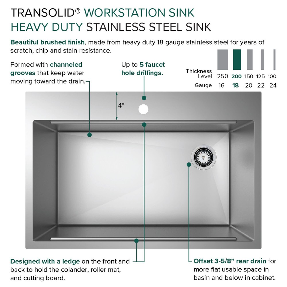 Powered by Frooition All Categories Transolid KWSST332210-1 KWS 33" Drop In Single Basin Stainless Steel Kitchen Sink with Basin Rack, Basket Strainer, Colander and Cutting Board Overview Item Description Transolid KWSST332210-1 Features: Covered under Transolid's limited lifetime warranty Constructed from 18 gauge stainless steel Drop in installation - sink will drop into a cutout in the countertop Single basin design for maximum work space Sound absorbent construction to prevent dish clatter and under cabinet condensation Sink comes pre-drilled with one faucet hole for use with a single hole faucet Rear drain location increases available space under the sink Coordinates with products from the KWS line All mounting hardware required for assembly is included Transolid KWSST332210-1 Specifications: Sink Length: 33" (left to right) Sink Width: 22" (front to back) Sink Height: 10" (top to bottom) Faucet Holes: 1 Faucet Hole Size: 2-1/2" Faucet Centers: 4-1/2" (distance between the installation holes for the faucet handles) Minimum Cabinet Size: 36" Drain Connection: 3-1/2" Why Choose BuildInc? OUR PROMISE TO YOU About Us At Build, we promise to provide the best selection we can, most competitive pricing, and unmatched customer service. Our store has quality home improvement products from trusted manufacturers like Moen, American Standard, Delta, Kraus, Kichler, Progress Lighting, Schlage, Kwikset, Baldwin, Broan, NuTone, Air King, and Rev-A-Shelf. With over 200,000 home improvement products for you to choose from, we have just what you need to get your project done. Fast & Free Shipping We promise to make it our priority to get you your items as fast as we can. We ship from 440 warehouses around the country, ensuring that your product will get to you as soon as possible. We know you're eager to get your hands on your new purchase, we would be too. As a bonus, most items ship for free. Returns We are happy to accept returns of unused or defective items for a refund within 30 days from the date of delivery. For returns outside 30 days, please contact our Customer Service team to go over our options. For full details, please view the Shipping and Payments tab above. To initiate a return simply go to the eBay Returns Portal and submit a return request. We ask that all items be returned with all original components via a traceable method. Once your return is received and processed, we will quickly get your refund or replacement issued. If for any reason you are unsatisfied with your purchase or for product or warranty questions, please contact Customer Service team for assistance. More Items! View more great items! About Us | Shipping | Returns | Contact Us | FAQ | Collections | Special Offers! Powered by Frooition Frooition Frooition | No-js Template | eBay design, eBay store design, eBay shop design, eBay template design, eBay listing design (ver:froo_no_js) This listing is currently undergoing maintenance, we apologize for any inconvenience caused.