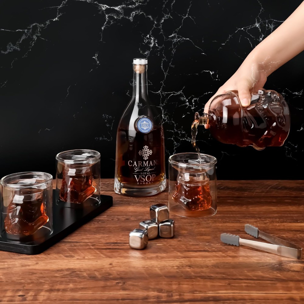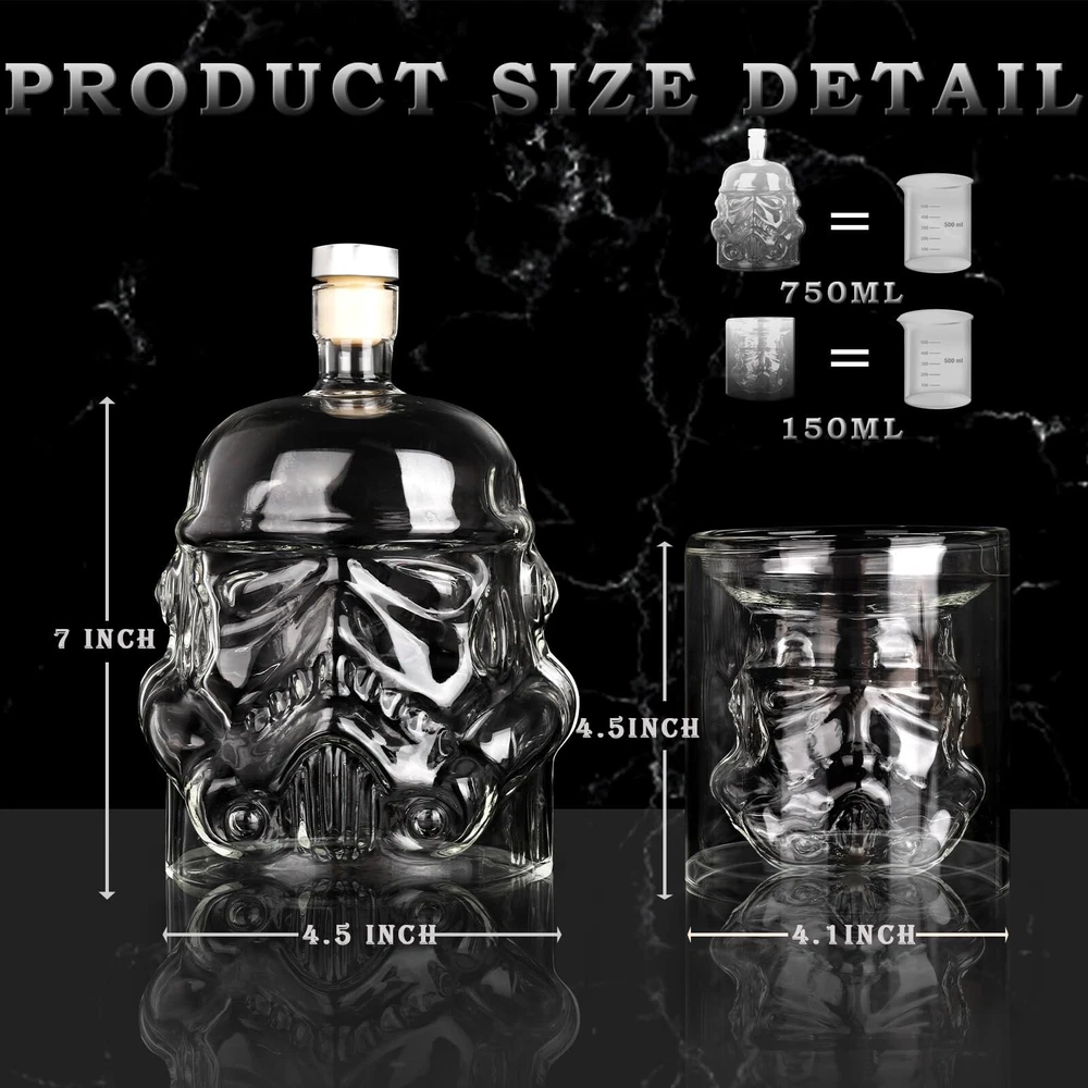 Transparent Creative Whiskey Decanter Set 1000ML Bottle with 2 Wine Glasses 150ml & Wine Stone, Funnel for liquor, Bourbon, Scotch, Vodka, Whikey Decanter Christmas Gifts for Men Women Product Details Style: 1decanter+4glasses Brand: PYPIBAWLY MPN: R3H3C7B2H4 UPC: Does not apply EAN: Does not apply Brand: PYPIBAWLY Material: Borosilicate Glass Color: Transparent Capacity: 750 Milliliters Special Feature: Airtight, Leakproof Brand: PYPIBAWLY Material: Borosilicate Glass Color: Transparent Capacity: 750 Milliliters Special Feature: Airtight, Leakproof Style: 1decanter+4glasses Product Dimensions: 7.5"W x 4.5"H Included Components: decanter&glasses Material Feature: Heat Resistant, Flavor Retaining Shape: Round Item Weight: 3.3 Pounds Model Name: Transparent Creative Whiskey Decanter Set With Lid: No Item Weight: 3.3 pounds Manufacturer: PYPIBAWLY Country of Origin: China Item model number: R3H3C7B2H4 Date First Available: April 20, 2023 Refer to Store fb as a reference. be a vvare of receiv ing n0thing or diff product. we r responsible for our own store product o n ly. We are store Boliboli, brand PYPIBAWLY. 1 DECANTER 4 GLASSES & ACCESSORIESincludes a 750ml whiskey bottle, 4 150ml wine glasses, 4 whiskey stones, 1 tong , 1 base, 1 funnel and 1 thank you card. Enjoy your favor scotch, bourbon, whiskey or other spirits in this beautiful craftsmanship style. UNFORGETTABLE GIFTthis decanter set makes a perfect wedding, birthday, anniversary, housewarming, graduation or holiday gifts. Its a never-wrong option for fans, or gift for men as a big boy collection. Get it before we run out! LEAD-FREE & ECO-FRIENDLYis made of borosilicate glass, which is sturdy, heat resistant and able to retain the flavor of your liquor. Our glasses are 5mm thick, experiments shown to be safe and reliable. CUSTOMER SERVICEHand wash only. If glasses are broken due to shipping, please contact us immediately.