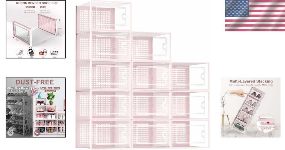 Transparent Dustproof Shoe Organizers - Large 12 Pack Storage Bins for Closets ‹ › ‹ › ‹ › ‹ › ‹ › ‹ › ‹ › ‹ › Transparent Dustproof Shoe Organizers - Large 12 Pack Storage Bins Key Features: Large Size Fit: Accommodates men's shoes up to size 9 and women's shoes up to size 10. Perfect for organizing various footwear. Stackable Design: Innovative slot lock feature allows for seamless stacking. Insert-and-push mechanism ensures stability and ease of use. Sturdy Construction: Made from durable ABS plastic, these organizers are built to last. Designed for stability even when fully assembled. Ventilation Design: Equipped with rear ventilation holes, promoting air circulation while preventing odors - keeping your shoes fresh and clean. Superior Dust Protection: Offers more protection against dust than traditional shoe racks, while being more ventilated and breathable than standard shoe cabinets. Multifunctional Storage: Beyond shoes, use these bins to store cosmetics, tools, games, hats, and more. Ideal for closets, entryways, or hallways. Enhance Your Home Organization Transform your living spaces with our Transparent Dustproof Shoe Organizers. These elegant, sturdy storage bins are the epitome of functionality and style. Designed to fit and protect your favorite footwear while saving space, they provide a pristine storage solution that prevents dust accumulation. Each box combines practicality and aesthetics, allowing you to easily view and access your shoes, and enabling you to showcase your collection beautifully. Perfect for any shoe enthusiast looking to maintain organization without compromising on elegance. Invest in the ultimate shoe storage solution today and allow your home to reflect your love for style and order! Shipping Free & Fast Shipping - We offer free shipping to most of the USA with a normal delivery time of 3-7 days. However, due to the current situation, additional delivery time (up to 3 weeks) may be required for some items. Alternative Carriers - We may use alternative carriers (e.g. USPS, FedEx, UPS, etc.) to ensure your package arrives safely and on time. Due to the use of multiple carriers, we are unable to provide a tracking number automatically. Handling Time - Orders are processed and shipped within 1-2 business days of receiving cleared payment. Shipping Restrictions - Shipping to Alaska, Hawaii, Puerto Rico, Guam, and other US territories may incur shipping charges or delivery restrictions. Please contact us before ordering, or your order can be refunded/cancelled. State Restrictions - There may be restrictions based on your state of purchase. For example, certain items may not be shipped to California due to state regulations. Contact for Tracking Updates - If you require tracking updates or have any concerns about the delivery of your order, please feel free to contact us, and we will be happy to assist you. Return 30-Day Hassle-Free Returns - We want you to be completely satisfied with your purchase. If you are not, you can return the item within 30 days of receiving it for a full refund or exchange. Easy Return Process - To start a return, simply contact us and we will provide you with a prepaid return shipping label and detailed instructions. Restocking Fee - There are no restocking fees for returns. However, the buyer is responsible for return shipping costs if the return is not due to a seller's error. Refund Processing Time - Refunds will be processed within 5 business days of receiving the returned item in its original condition. Payment We accept all major credit cards, PayPal, and Apple Pay for your convenience. Your payment information is secure and encrypted to ensure a safe and seamless transaction. Please complete your payment within 3 days of purchase to avoid any delays in shipping. Feedback Your feedback is extremely important to us. We strive to provide the best products and customer service possible. If you are satisfied with your purchase, please take a moment to leave us a positive review. If you have any concerns or issues with your order, please contact us before leaving negative feedback. We are committed to resolving any problems and ensuring your satisfaction. Contact Us If you have any questions or concerns, please feel free to reach out to our customer support team. You can contact us through the eBay messaging system. We are available Monday to Friday, 9:00 am to 5:00 pm EST, and we will do our best to respond to your inquiry within 24 hours. Buy it now and enjoy a pleasant shopping experience! UPC: Not Set Unit Quantity: 12 Material: Plastic,ABS Plastic Mounting: Free Standing Features: Foldable,Stackable,Dustproof,Transparent Theme: Not Set Care Instructions: Hand Wash Only Brand: Unbranded Item Height: Shoe Storage Boxes Item Length: Shoe Storage Boxes Item Width: Shoe Storage Boxes Type: Shoe Storage Box Number of Shelves: 1 Capacity: 11-15 pairs Item Weight: Less Than 8 lb Item Depth: Less Than 8 in MPN: Not Set Model: Not Set Number of Items in Set: Twelve-Piece Color: Pink Number in Pack: 12 Number of Compartments: 12 Number of Drawers: 0 Style: Modern Country/Region of Manufacture: Not Set Original/Reproduction: Not Set Finish: Matte Unit Type: lb Assembly Required: Not Set