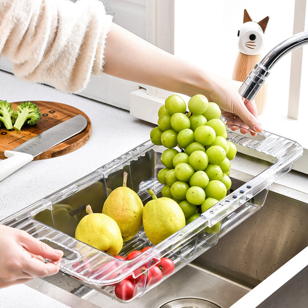 Feature: sink drying rack gtin13: does not apply Item Diameter: 20.50 UPC: does not apply Size: 46.5x20.5cm MPN: 182353APXL3NE2 Item Height: 8.50 Item Width: 20.50cm Item Weight: 650.00 Color: Transparent Item Length: 46.50cm Brand: None Model: 3in1 Wrap Type: kitchen sink drain basket Country/Region of Manufacture: China Style: kitchen sink drain basket Material: plastic