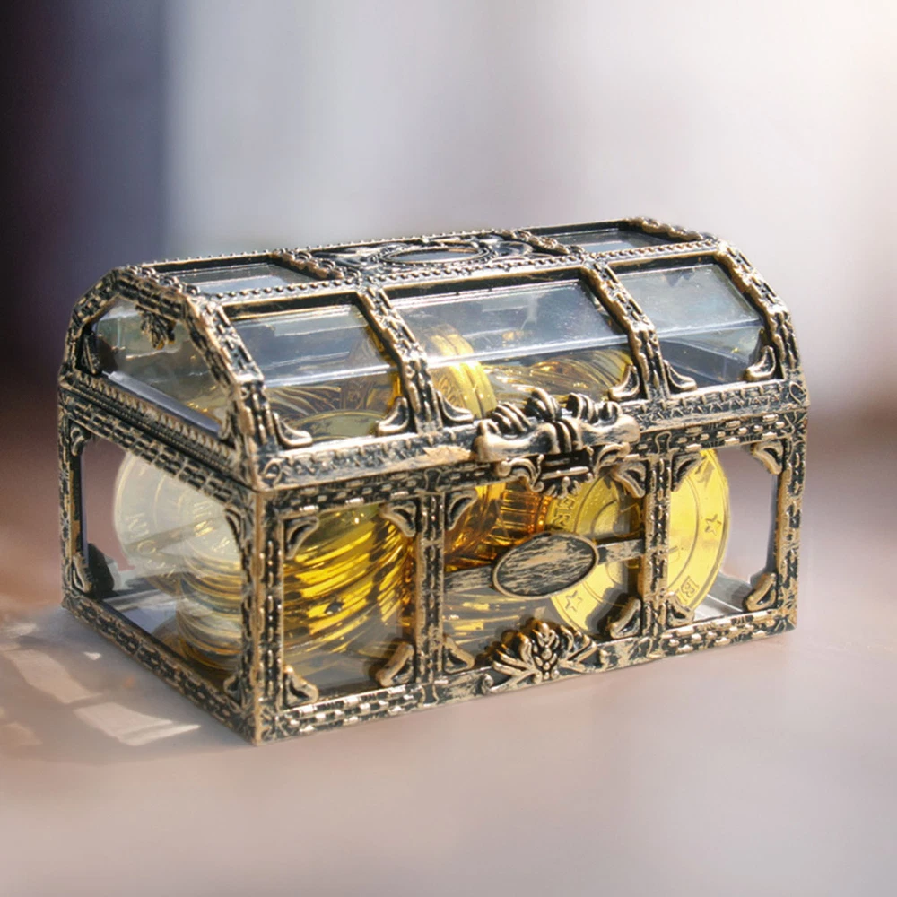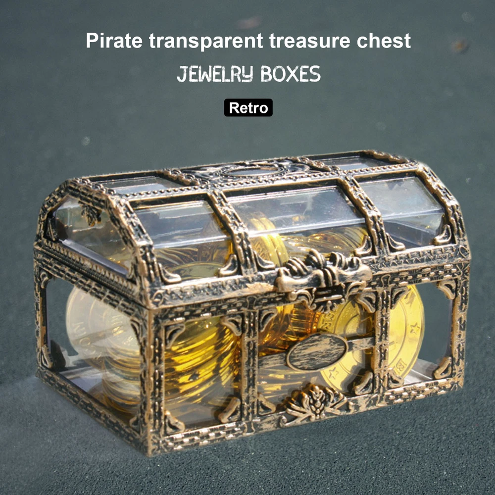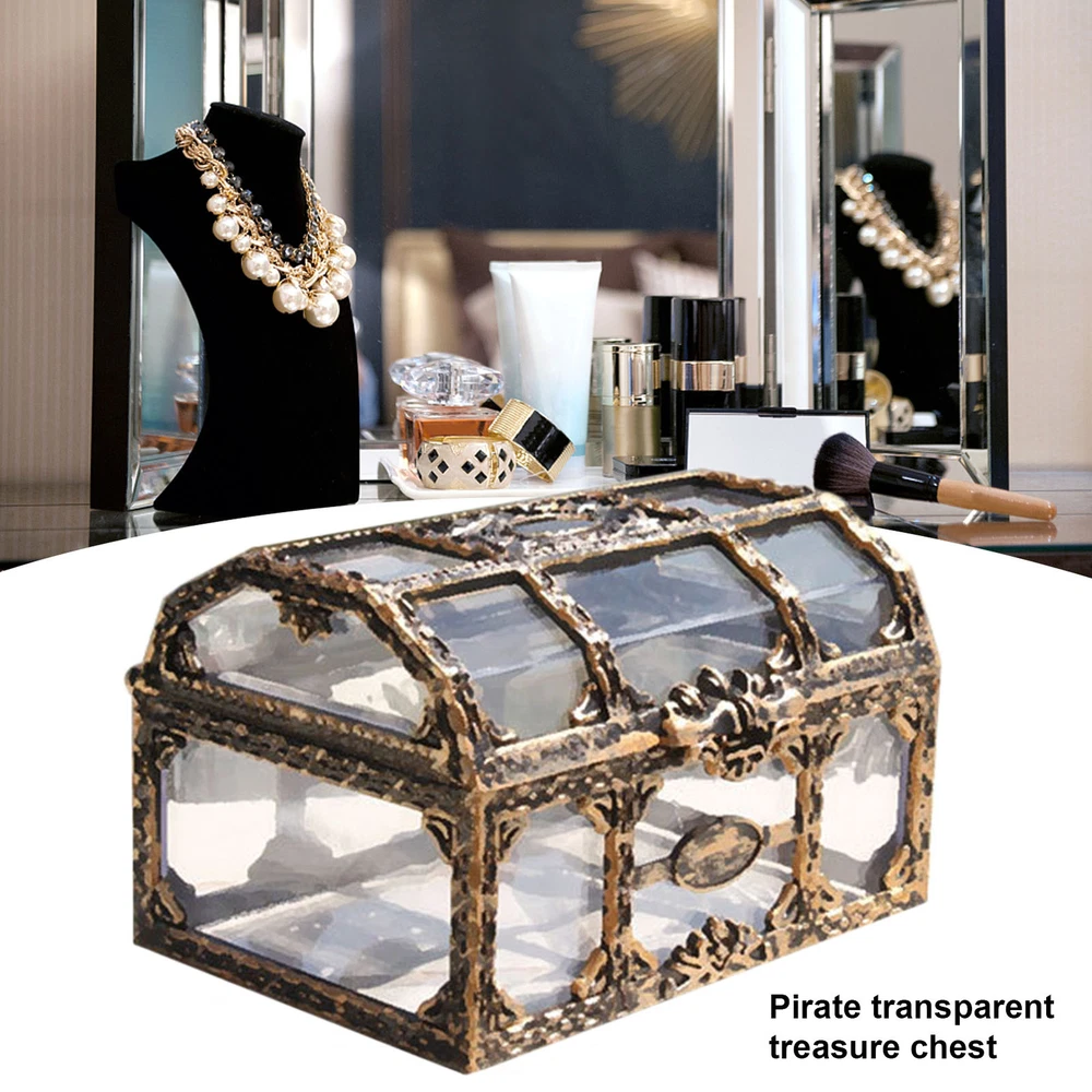 Transparent Pirate Box Trinket Keepsake Treasure Chests, Vintage Lidded Box