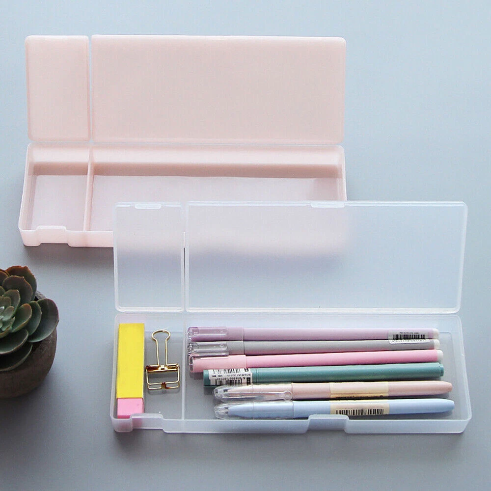 100% brand new and high quality Lovely transparent color pencil box for your stationary organization. Delicate craftsmanship, smooth edge and firm clip closure. Portable size for easy storage as well as can be contained makeup brushes or other small things. Item Name: Pencil Box Material: Plastic Quantity: 1 Pc Features: Transparent Colors, Durable, Stationery Supplies Size Details: [Our Size S] 17cm x 5.0cm/6.69" x 1.97" (Approx.) [Our Size M] 18cm x 6.5cm/7.09" x 2.56" (Approx.) [Our Size L] 21cm x 7.0cm/8.27" x 2.76" (Approx.) Package Includes: 1 x Pencil Box (Pens Not Included)
