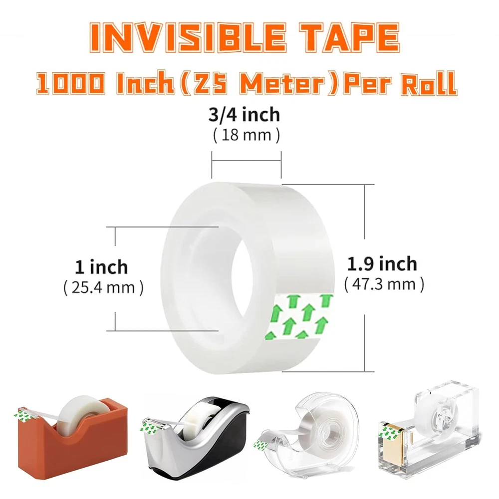Transparent Tape Refills, 3/4-Inch x 1000 inch Clear Tape, 1 Product Details Package Dimensions : 5.98 x 4.02 x 2.05 inches; 12.31 ounces Manufacturer : KUKEO Brand: KUKEO Color: Transparent Number of Items: 16 Recommended Uses For Product: Packaging Special Feature: Transparent Long-Lasting Tape Refills: These transparent tape rolls measure 3/4-inch wide and 1000 inches long, providing ample length for various applications. Versatile Usage: Ideal for gift wrapping, office supplies, craft projects, and general household needs, these clear tape refills offer reliable adhesion. Easy Dispensing: With a 1-inch core, these tape rolls can be easily loaded into standard desktop tape dispensers for convenient use. Transparent Design: The clear tape allows for a neat and discreet appearance when applied to packages, documents, or crafts.Essential for holidays like Halloween, Thanksgiving, Christmas, and everyday use. Reliable Quality: Crafted from durable materials, these tape refills ensure consistent performance and long-lasting use.