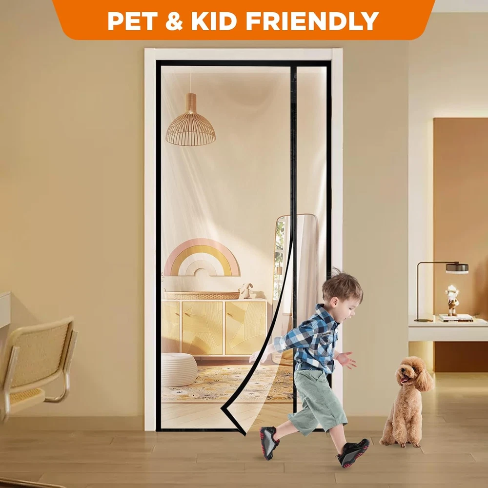 【Insulated Door Curtain Size】This magnetic thermal insulated curtain size: 37.4"x83",Fits door size up to: 36" x 82", which is widely used for Front back doors, kitchen, air-conditioned room. Please measure twice your door size before placing order. The doorway curtain is a good companion for air-conditioned rooms, which can prevent warm air loss in winter and keep the cold wind from entering,stop the cold air-conditioning escaping of your room in summer and keep hot air out, which saves energy and cut home heating costs effectively,make you enjoy a warm winter or a cool summer! 【Left Right Side Opening】This magnetic screen door is a universal side opening design,in order to catch the door handle easily. hook tape can be attached to the both side of soft plush eges of Insulated Door Curtain,reversible left or right opening according to the position of your door handle. 【EVA Eco-Friendly Material】Our magnetic self-closing door curtain is made of 0.15mm thickness environmental protection EVA material which is soft, durable,non-odorous and easy to clean. To keep the heat of the room in winter and cold air in summer. 【Easy to Install】This magnetic screen door package included a roll of magic tape, a pack of push pins, and an instruction manual.The doorway door curtain is easy to install. simply peel the adhesive backing off, apply it to the dry door frame. the push pins ensure the screen door is installed more stable. 【Hands Free Design】The screen door with automatic magnets closure is easy to open or close whether your hands full,because the Insulated Door Curtain is embedded with more powerful magnets. 【Kid & Pet Friendly】Our Insulated Door Curtain is embedded with powerful magnets,kids and pets can go in and out of doors with hands free. 【Quality Guaranty】If there is any quality issue for this magnetic insulated door curtain or you are not happy with your purchase, please do not hesitate to . We will do our best to help you. Product Description Our transparent reversible left or right side opening insulated door curtain is made of EVA insulated materia.It can maintain the room temperature indoor in winter,and it can also keep the cold air-condition wind indoor in summer.The thermal insulated curtain with automatic magnets closure is easy to open or close,so the kids and pets can go in and out easily. The thermal insulated door curtain is embedded with more powerful magnets,even if your hands are full,you can pass through with hands free,the door curtain is easy to close seamlessly. Our magnetic screen door is embedded with powerful magnets,you don't have to open or close the door,your kids and pets can go in and out of the door with hands free. The Insulated Door Curtain is made of transparent EVA Insulated material.It can maintain the temperature indoor in winter,and it can also keep the cold air-condition wind indoor in summer. Specifications: Product Name: Transparent Reversible Left or Right Side Opening Insulated Door Curtain Screen Size: 37.4"x83" ; Fit Door Size: Up To 36" x 82" ; Color: Transparent ; Material: EVA Material . Package Include: A Thernal Insulated Door Curtain ; A roll of Magic Tape ; A pack of push pins .