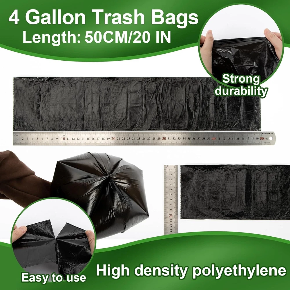Free eBay listing template designed by dewiso.com Trash Bags Bulk - 100 Count Garbage Bags 4 Gallon Trash Bag Small Trash Can Bags About this item: Black Trash Bags: Black garbage bags are made of high-density polyethylene, which is highly resilient and durable enough to withstand a certain weight of garbage. The color of black garbage bags makes the contents less visible, helping to protect privacy and avoid undue attention to the garbage Multiple Usage: 4 Gallon trash bag can be widely used in living room, bedroom, office, toilet, kitchen, no matter it's household garbage or food waste, all can be, it's recommended to put small trash can bags in every area of your home, so it's very convenient, and there's a place to throw it when you have garbage to throw with your hand 5 Rolls-100 Count: A total of five rolls, 100 garbage bags, a lot of quantity, small size, easy to store, enough to use for a long time. It is recommended to change the garbage bags daily to avoid odors from accumulating garbage for too long For Family: A large number of garbage bags is an ideal gift for your family and friends to plan better to dispose the garbage in your house and make your house more neat and clean NOTE: If you have any dissatisfaction with this product, just contact us, we will try our best to solve your problem. Features: Product Description A total of five rolls, 100 garbage bags. Contact us: We can be contacted at any time through eBay messages if you have any questions, comments or product requests. We will respond to you within 24 hours and do our best to help you out! We encourage our customers to contact us with any questions or concerns! We'd like to be sure you are completely satisfied with your purchase. THANKS FOR SHOPPING WITH US!!
