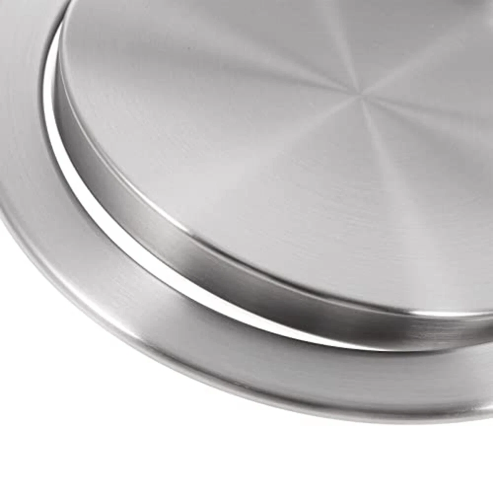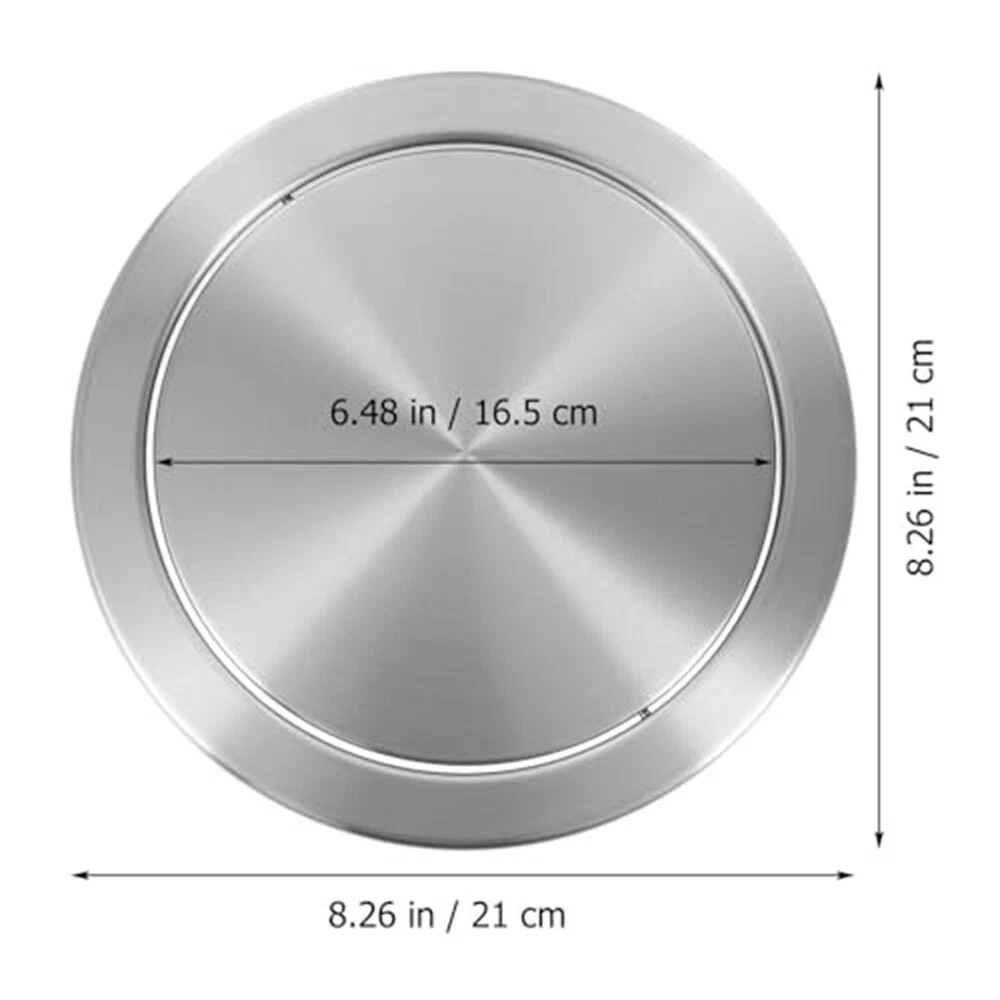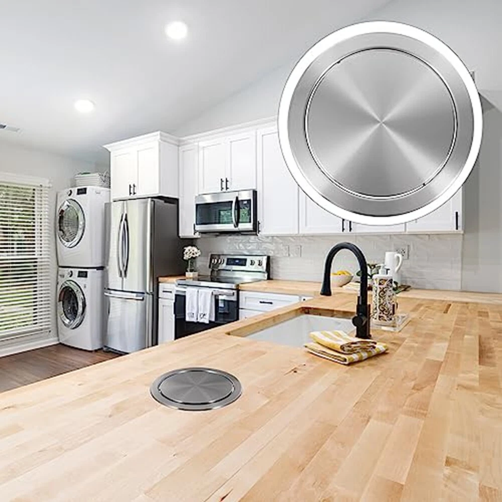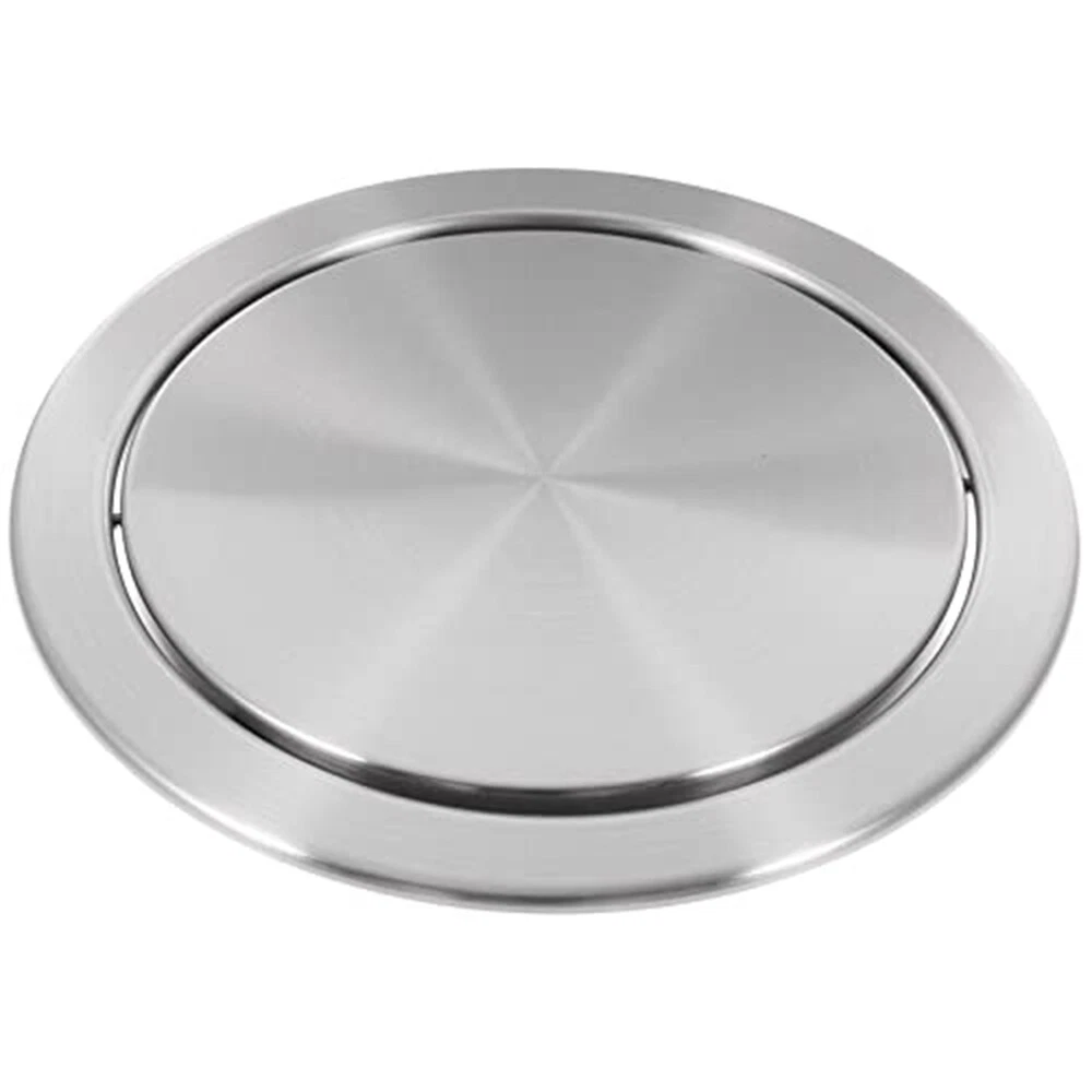 Trash Can Lid Simple Trash Grommet Embedded Countertop Round Cover Swing4911 Features: Suitable for restaurant kitchens, hotel bathrooms, airport bathrooms, hospital workbenches, home kitchens, workshop workbenches.Widely applied in home, restaurant, cafe, office, restroom, mall, and etc. The central swing and semi-circular flap easy to open and close the lid. Simply push any side of the lid to open it and the lid will automatically close once your hands leave it, which will bring you much more convenience when you are busy with cooking in the kitchen! Excellent craft, carefully down to every detail to give it a chic and beautiful look.Our recessed countertop trash chute is made out of stainless steel with exquisite workmanship, which is , , and for use. Concealed design saves space, , scratch- and oil-.The smooth metal is with a damp cloth if necessary.Thickened stainless steel is solid, stable horizontally, and turned silent. This modern round trash lid is suitable for both marble and wooden countertop, widely used in kitchens, bathrooms, offices, and more. Description: Hole opening: 18-20cm size: Diameter about 21cm Material: Stainless steel colour: silver Package Contents: 1 x recessed cover