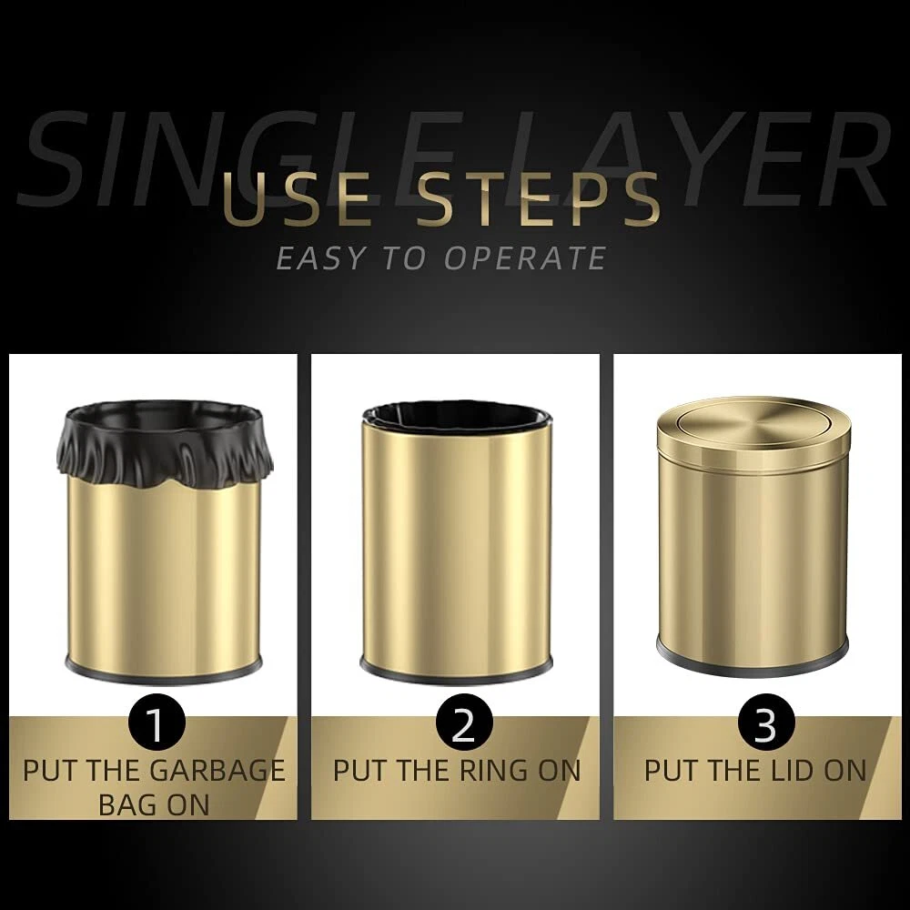 Product Description 15L/4GAL Black and Gold Bathroom Garbage Can, Trash Can with Flipping Lid for Bathroom,Kitchen,Living Room,Hotel,Office (Black) 【Material and shape】: This is a stainless steel garbage can with a unique latte art process, showing the elegance and high-grade garbage can. 【Shake lid design】: The lid of the trash can is a shake lid design, which can be rotated 360 degrees, and can be easily opened with a gentle push, and can be quickly restored to its original form. 【Maintenance tips】: This stainless steel trash can can only be rinsed and dried with water. Do not use cleaning agent to clean, it will destroy the color of the trash can. 【size / capacity】: the capacity is 15L / 4gal, the size is 9.8 inches in diameter and 11.8 inches in height 【Usage scenario】: This golden trash can is suitable for high-end decoration places, such as living rooms, bathrooms, bedrooms, high-end hotels, shopping malls and so on. About Us We are a reputable seller with many years of experience selling on eBay. Our goal is to provide high-quality products and excellent customer service. Shipping Items will be shipped within 1-3 business days when we received payment. (Orders are not processed on weekends & holidays) Tracking information will be sent once item is shipped. Delivery time depends on destination and other factors Item is shipped to ebay address. Leaving correct address can minimize delay. For international shipping and shipping to Guam, Hawaii and Alaska, Please contact us before placing the order. International buyers please note: Import duties, taxes and charges are not included in the item price or shipping charges. These charges are buyer’s responsibility. We will try our best to reduce the risk of the custom duties. Local pick-up is unavailable at the moment. Contact Us We reply any email messages within 1 business / working days(off-duty at weekend). If you do not get a response from us, then please check your junk or spam mailbox. Our Business hours: Mon-Fri 9:00-18:00, UTC/GMT +8 hours. Please contact us either by clicking "contact seller" in the "purchase history" section or simply click "ask a question" at the bottom of this page. If you are unsatisfied with our item or service, please contact us before leaving any feedback. We are committed to resolve all issues in a friendly and satisfactory manner.