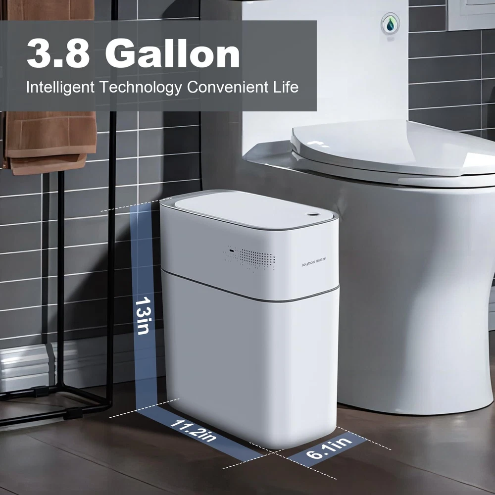 Trash Can with Lid Automatic Garbage Can, 3.8 Gallon Slim Small White Plastic...