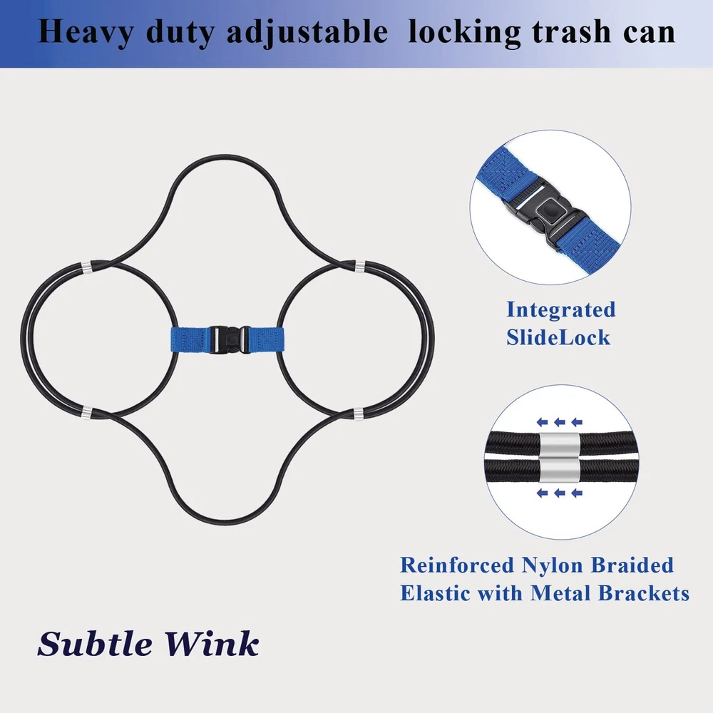 Trash can lid lock for animals -Our locking trash can dog proof with 2 extra rubber bands is the perfect solution for pet owners who want to keep their trash can secure and their furry friends out of harm's way animal proof trash can outdoor-Our heavy-duty animal trash can lock features a reliable locking mechanism, making them ideal for use in wildlife areas. With our innovative non-drill feature trash can locks for outside , you can secure your trash without damaging your container Outdoor trash can with locking lid-Our animal proof trash can strap barrel is designed to keep your garbage safe from curious critters, while its durable construction ensures long-lasting use heavy-duty adjustable lock garbage can. GARBAGE CAN LID LOCK- The Garbage can lock is easy to install and use, providing added peace of mind for those living in areas with bears or other wildlife, trash can lock for animal trash lock provides a secure clean, and sanitary environment locking garbage can- The bear trash can lock, convenient and secure way to keep your trash contained and prevent animals from accessing it, making it a must-have for any outdoor space trash can protector is easy to install on 30-50 gallon.