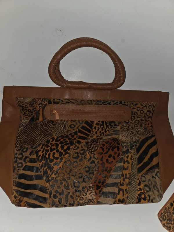 Preowned but still in excellent condition zippered closure travel bag with zippered pocket in front and back, lined with zippered pocket inside. Please see pics for flaws. Comes with mini zippered wallet. Approximately 15.5x12. Sold as is
