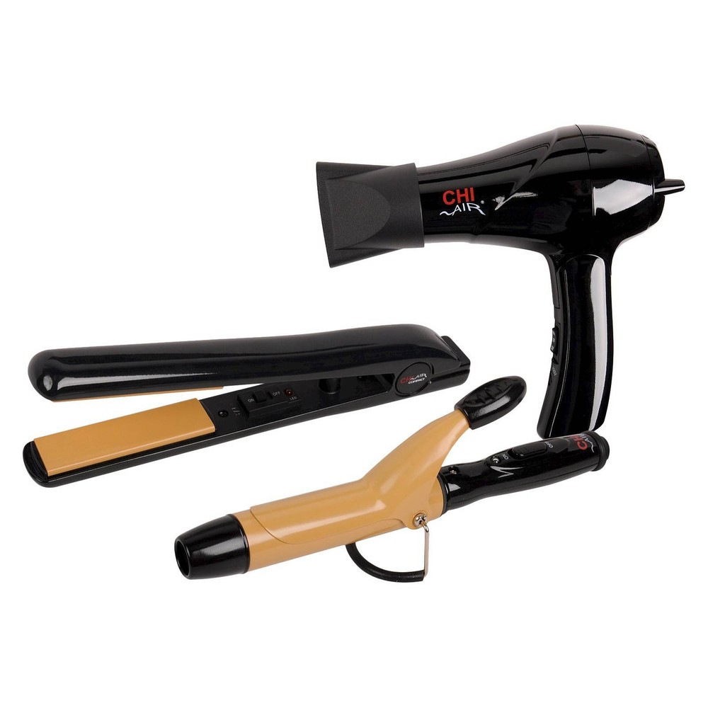 Travel CHI Air Ceramic Set Dual Voltage 3 4 Flat Iron 1 Curler Dryer 813843031144