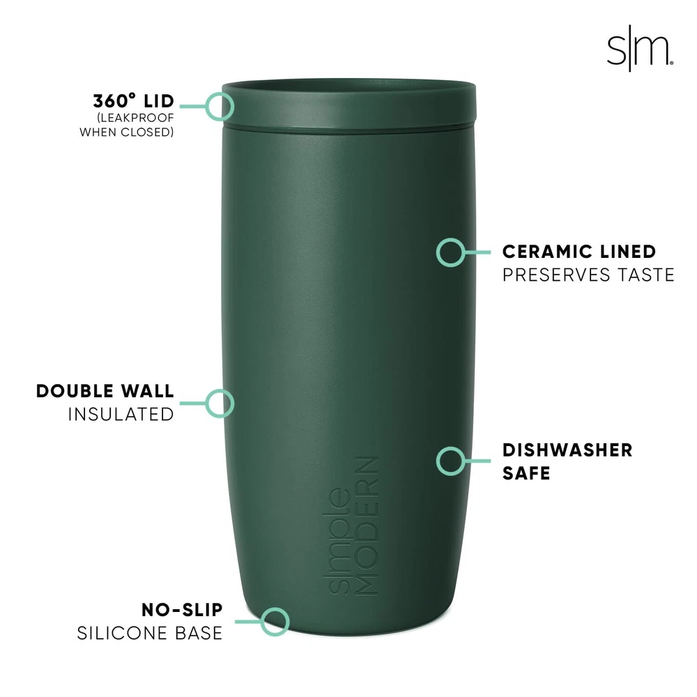 Simple Modern Travel Coffee Mug Tumbler with 360° Lid | Ceramic-Lined Insulated Stainless Steel Cold Brew Iced Coffee Cup Thermos | Gifts for Women Men Her Him | Voyager Signature | 16oz | Forest 360° Lid: The push-button lid is drinkable from any angle and is leak-proof in the closed position. Ceramic-Lined: This double-walled vessel is coated in a ceramic lining that preserves the integrity of your coffee's flavor for even the most discerning palates. Elevated: Features a silicone base to soften contact and enhance stability. Cupholder Friendly: This sleek design fits in most cupholders, making it perfect for commuting and on-the-go hydration. Carry your coffee in style with our aesthetic design and trendy colors. Limited Lifetime Warranty & Pat/Pat Pending The Simple Modern Signature Voyager with 360° Lid is the perfect on-the-go coffee vessel with elevated features. It's designed with our most innovative lid yet, a ceramic coated interior, and double-wall insulation. The convenient, 360° push-button lid is drinkable from any angle and is leak-proof in the closed position, allowing for safe transport and easy sipping. Like all Simple Modern stainless steel products, the Signature Voyager is made from premium grade materials and is designed to last. The 18/8 stainless steel vessel is also coated in a ceramic lining that preserves the integrity of your coffee's flavor for even the most discerning palates, and the double-walled insulation ensures your coffee stays hot or cold for hours. Plus, the silicone base softens contact and adds grip to enhance stability on surfaces, and its narrow design makes it car cupholder-friendly and perfect for on-the-go hydration. With durability like this, you’ll be refilling your Signature Voyager and cutting down on single-use plastic for years to come – Take Us With You. SHIPPING - We offer FREE shipping on all orders! - We ship within 3 business days of payment, usually sooner - We use a selection of shipping services such as UPS, FedEx, USPS etc - We only ship to the lower 48 states, no APO/FPO addresses or PO Boxes allowed International buyers – please note: Import duties, taxes, and charges aren't included in the item price or postage cost. These charges are the buyer's responsibility. - Please check with your country's customs office to determine what these additional costs will be prior to bidding or buying. - We have confidence in our products, but if you are not fully satisfied please contact us within 30 days of purchase and you will get full refund. * Order Cancellation Policy ** You can return a product for up to 30 days from the date you purchased it. 1. The seller reserves the right to cancel the special case only due to eBay cancellation fee. 2. The decision of seller is the final. 3. The seller will respond to the cancellation request within 2 business days. Please wait for the result of cancellation. 4. In case the cancellation is not completed by some reasons, the buyer can follow the options below to get the refund. 4.1 The buyer can reject the item when it arrives. 4.2 The buyer can send the item back to the seller within 30 days If the buyer receives item (USA Shipment ONLY). The seller will provide the FREE return label to the buyer when the buyer opens " Return Item" case on eBay by using the reason as "Change my mind" ONLY. 5. When buyer has placed the order. The order will be processed and completed by automatic warehouse system within 5 minutes. In case that buyer sends the cancellation request after 5 minutes of placing the order, the request will be rejected. **Sending direct message to cancel the order is not allowed for every case.* Return Policy For the return case - If buyer would like to return the items for refund or replacement, please CONTACT SELLER to receive the free return label from seller. The refund or replacement will be processed with the tracking number of return label which is provided by seller only. The other ways of return which are not approved by seller will not be processed for the refund or replacement. CUSTOMER SERVICE - We try our best to make sure every customer is completely satisfied. - If there's a problem, feel free to message us! - We're happy to help.
