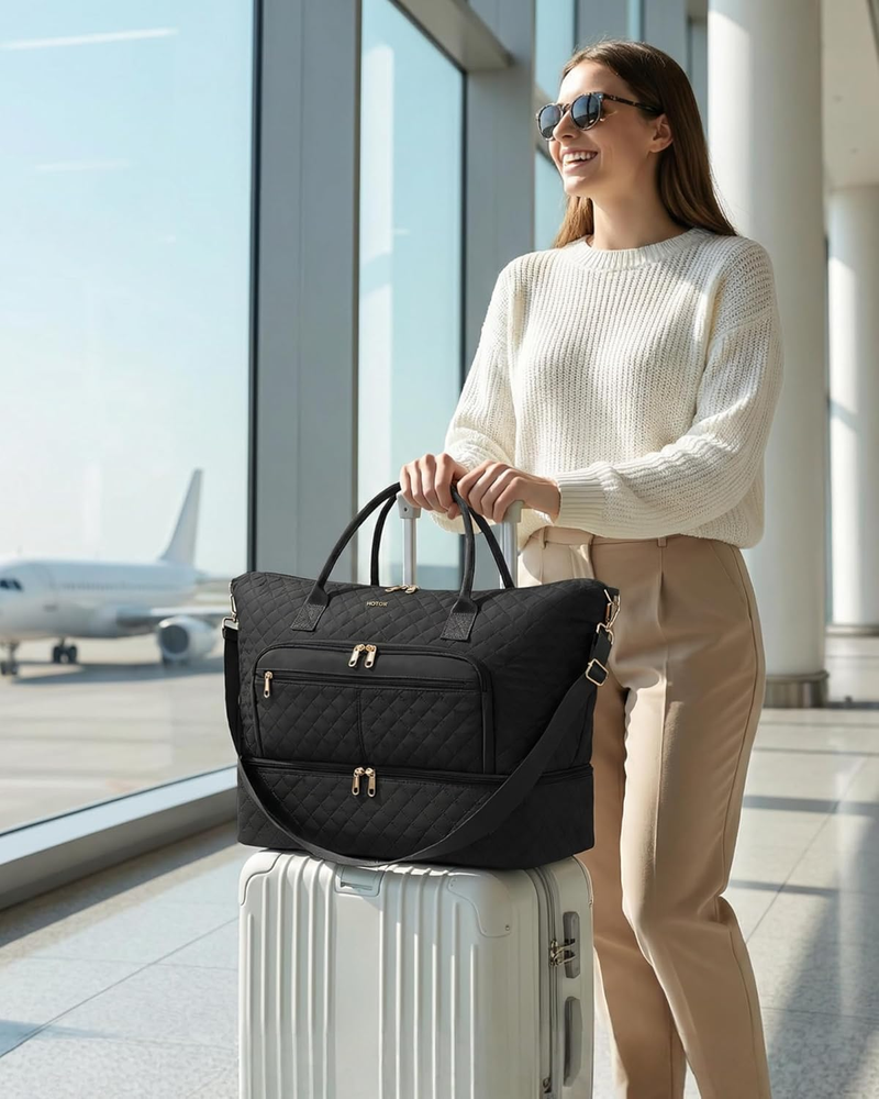 Store New Arrivals Add to Favorite View Feedback Contact Fast deliveries to the customer's home Quality customer service John Make the customers happy! Travel Duffle Bag for Women - Carry on Bag with Toiletry Pouch & Shoe Compartment, Large Overnight Weekender Bags for Gym, Business Trips, Sports and Hospital, Black, 17.3" X 7.9" X 13.4" Description EFFICIENT ORGANIZATION: This sports bag offers a roomy 17.3" x 7.9" x 13.4" storage area paired with a 7.1" x 2.4" x 5.9" pouch for small cosmetics or toiletries. Dedicated interior and exterior pockets provide additional sorting zones, keeping belongings categorized and ensuring quick access. FRESH FOOTWEAR ZONE: This overnight bag features a 4.3" bottom shoe compartment with 2 ventilation holes that promote airflow and help reduce odor buildup. A separate U-shaped opening provides smooth, wide access to your shoes. Keeping footwear separate from clothing helps your packing stay cleaner. FLEXIBLE CARRYING: This gym bag for women comes with reinforced top handles, an adjustable 29.5"-53.1" shoulder strap, and a rear trolley sleeve for multiple carrying options. The adaptable setup helps reduce strain and frees your hands when needed, making airport travel and daily commutes more convenient. RELIABLE MATERIAL: Made with lightweight, water-repellent, and abrasion-resistant fabric, this travel bag for women withstands everyday handling. The smooth metal zippers glide cleanly without snagging. Its long-lasting, protective design keeps your essentials shielded from splashes, bumps, and frequent use. MULTI-SCENARIO READY: This portable weekend bag for women features a streamlined layout with flexible storage zones that shift effortlessly between tasks. It adapts to workouts, short trips, business travel, and hospital stays, allowing you to handle each occasion with confidence and ease. Product description Item Weight 485 Grams Department Unisex Adult Product Dimensions 17.3 x 7.9 x 13.4 inches Color Black Size 17.3" x 7.9" x 13.4" ABOUT US We offer the best prices around on high quality products. Our E-store includes media such as books, movies, music and games while offering electronics, toys, sporting apparel, clothing, tools, general home, garden items and more. SHIPPING We are always working hard to ensure your package arrives as soon as possible. Please understand that some factors like weather, high postal traffic, and the performance of shipping companies are outside of our control. We offer free shipping to the lower 48 states and ship within 2 business days of payment, usually sooner. We do not accept P.O. Boxes. Please provide a physical address. For shipping outside of the continental USA, we only use eBay's Global Shipping Program. The item is shipped to KY and then sent to the rest of the world. International customers are responsible for all duties and taxes. Continue to 'check out' to calculate costs for shipping the item to your country. Messages regarding eBay's Global Shipping Program MUST be directed at eBay EXCLUSIVELY. RETURNS We offer a 30-Day Return Policy on items in which you are not completely satisfied with. You have the option of a full-refund or an exchange of the item. No returns are available on items shipped outside of the USA PAYMENT We accept PayPal. CONTACT US This page content is yet to come Please ad us to your favorite seller and visit again later Thank You CUSTOMER SATISFACTION We try our very best to make sure every customer is completely satisfied. If there's a problem, message us! We're happy to help. WE ACCEPT