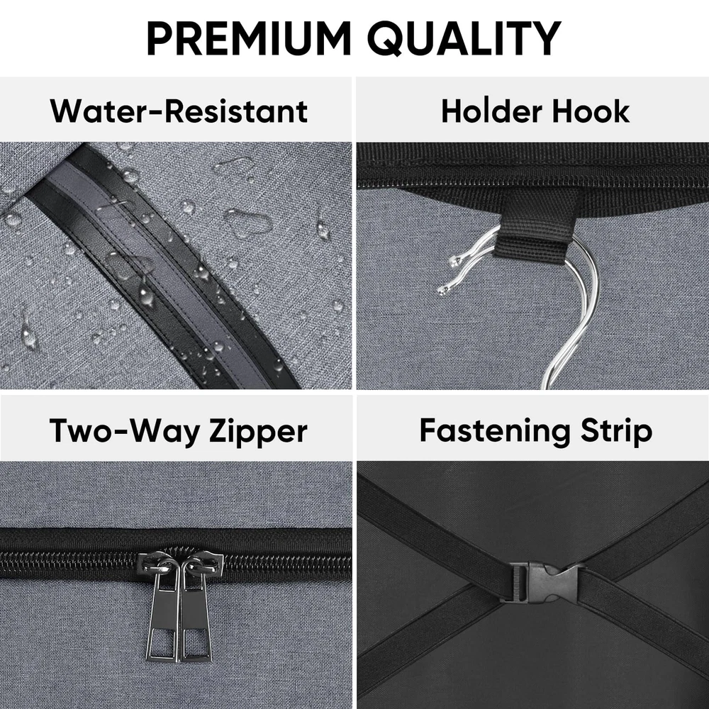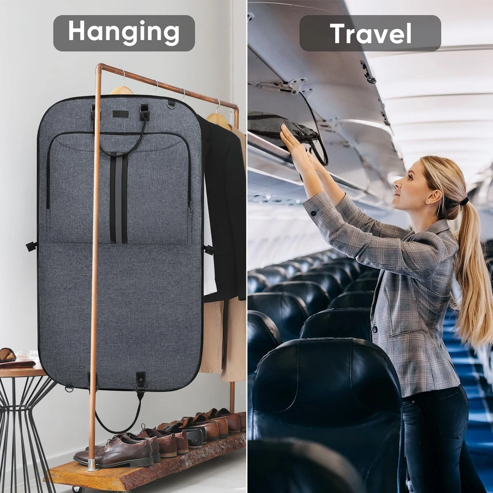 [Premium Material] Crafted from premium 600D water-resistant materials, this garment bags for storage is a testament to longevity. The structure of the suit carrier garment travel bag ensures your garments remain unharmed from the wear and tear of travel. [Practical Design] This garment bag for suit is more than just a protective layer for your clothes. Its foldable design ensures that it compacts down efficiently, taking minimal storage space. Moreover, you can also small items in the front pocket of the travel garment bag. The PU handle, complemented by an adjustable shoulder strap, ensures ease of transportation during travels. [Optimized Dimensions] The dimensions of the suit travel bags for men is 42''x24'' when fully expanded, ensuring that your suits, dresses, and precious attire have ample space to rest without getting wrinkled. The dress garment bags for travel gracefully folds down to a compact 24''x21'', making storage or transit a breeze. The adjustable shoulder strap can be extended up to 50'' to suit your carrying preference. [Versatile Utility] Whether you're a business professional headed to a crucial meeting, a groom or bridesmaid preparing for a wedding, or someone attending an upscale event, this suit garment bag is your attire's best friend. It preserves the freshness and crispness, ensuring you always put forth the best version of yourself. [Quality Commitment] stands behind the quality of our products. If for any reason you are not satisfied with your purchase, please us. We provide 30-day money back . 100% Satisfaction for risk-free shopping!