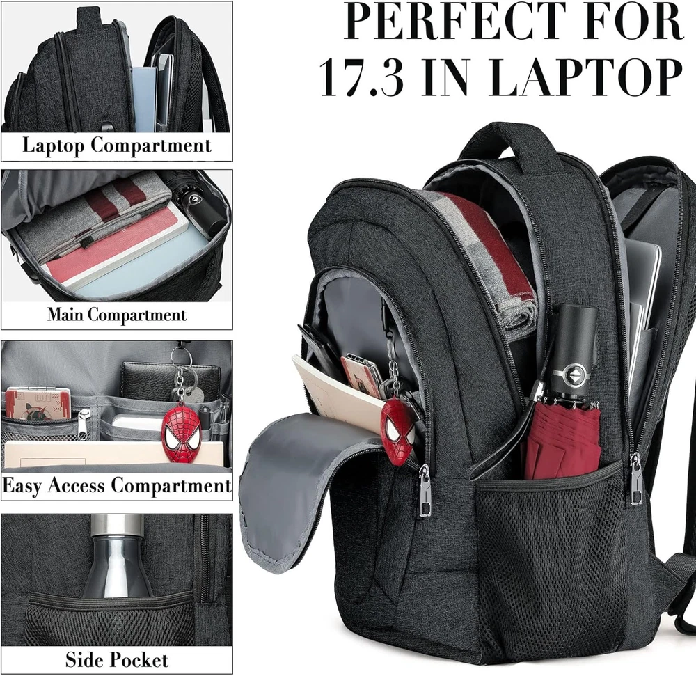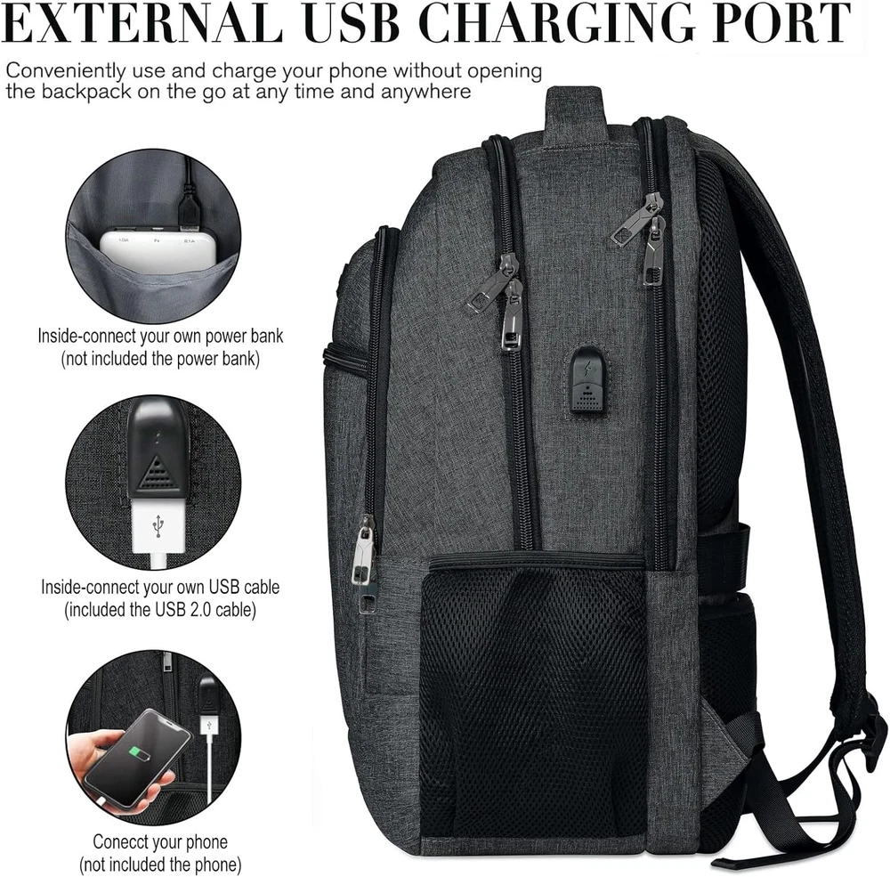 Store New Arrivals Add to Favorite View Feedback Contact Travel Laptop Backpack, 17'' Extra Large School Backpacks for Teen Boys and Girl Description ★STORAGE SPACE&POCKETS: The main pocket of school backpack is equipped with a separate laptop soft compartment hold 17-inch laptops and 16-inch, 15-inch, 14-inch and 13-inch Macbooks/notebooks. The soft sponge design will protect your laptop. Outside the compartment, a more spacious packing compartment roomy hold an iPad, mouse, charger, binder, books, clothes, etc. Mesh pockets are located on the sides of water bottles and compact umbrellas to keep your belongings organized and easier to find ★ STURDY MATERIAL&SOLID: Made of Waterproof and Sturdy Polyester Fabric with metal zippers. Ensure a secure & long-lasting usage everyday & weekend. Serve you well as professional office work backpack, slim USB charging backpack, perfect as Laptop Backpack, Travel Backpack, College Bookbags School Teen Boys Backpack, mochilas para hombres. Premium gift for the family, friends, co-workers, Birthday, Christmas for Middle School, High School, College, Bachelor, Graduate, Men, Adult Traveling ★USB PORT &ANTI THEFT DESIGN:With built in USB charger outside and built in charging cable inside,this USB backpack offers you a more convenient way to charge your phone while walking. A luggage strap allows backpack fit on luggage/suitcase, slide over the luggage upright handle tube for easier carrying. With a hidden anti theft pocket on the back protect your valuable items from thieves, please be assured that the use of ★ COMFY&STURDY: Comfortable airflow back design with thick but soft multi-panel ventilated padding, gives you maximum back support. Breathable and adjustable shoulder straps relieve the stress of shoulder. Foam padded top handle for a long time carry on. ★Age: suitable over 3 years old ABOUT US We offer the best prices around on high quality products. Our Online store includes electronics, toys, sporting apparel, clothing, tools, general home, garden items and more. SHIPPING We are always working hard to ensure your package arrives as soon as possible. Please understand that some factors like weather, high postal traffic, and the performance of shipping companies are outside of our control. We offer free shipping to the lower 48 states and ship within 2 days of payment. For shipping outside of the continental USA, we only use eBay International Shipping program.The item is shipped to Illinois and then sent to the rest of the world. International customers are responsible for all duties and taxes. Continue to check out in order to calculate costs for shipping the item to your country. Messages regarding eBay's International Shipping Program MUST be directed at eBay EXCLUSIVELY. RETURNS We offer a 30-Day Return Policy on items which you are not completely satisfied with. You have the option for a full-refund or an exchange of the item. No returns are available on items shipped outside of the USA. PAYMENT We accept PayPal. CONTACT US This page content is yet to come Please ad us to your favorite seller and visit again later Thank You CUSTOMER SATISFACTION We try our very best to make sure every customer is completely satisfied. If there's a problem, message us! We're happy to help.
