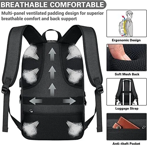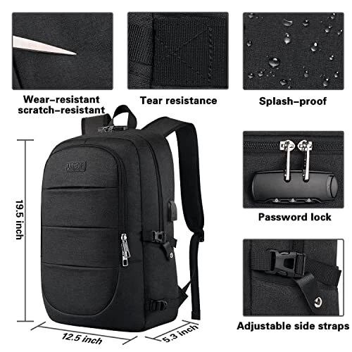 Return Policy Fast Delivery Trusted seller Travel Laptop Backpack for Men, 15.6-17.3 inch Laptop Backpack for School, Anti Theft Business Work Backpack with USB Charging Port, Water Resistant College Computer Bag for Men & Women, Black Product Description Dimensions: This travel laptop backpack fits up to 17.3" laptop. Exterior dimensions (L*W*H):19.5x 12.5 x 5.3 inch. Simple and practical, lightweight and comfortable, very suitable for travel, and it also work well as business backpack, work backpack, computer bag, hiking bag, daily bag Anti-theft Design: This travel backpack apply anti-theft design techology. Includes a theft proof combination lock metal zippers, no thief can open your backpack easily .Provide security for your journey External USB Charger Port & Headphone Jack: Business work backpack with charging cable is convenient to charge smart phone, tablet, other devices. Headphone Jack: you can listen to your favorite music when you are carring the travel backpack on road. Note: Not Include Power Bank Comfortable Back Support System: Ergonomic design of S-shape padded shoulder straps and padding back design, made from high elastic and breathable sponge and fabric, equipment with adjustable chest buckle and ring type adjustable hasp, adjust the strap length freely, reduce the burden of weight, protect the back and shoulder effectively, more comfortable for your life Material: College school backpack made of tear-resistant nylon fabric and its dual-access zipper with anti-theft design allows for easy access and increased safety.Lightweight and anti-theft is the biggest feature of this backpack. Age: over 12 years old Shipping Returns Payment Shipping Shipping is FREE to all addresses other than APO/PO boxes in the lower 48 states. All our stock ships from US-based warehouses. Shipped via USPS or UPS (depending on location and package weight) Unless stated otherwise, all orders will ship within 24-72 hours of your payment being processed. Check our feedback to see the great reviews of FAST shipping we offer. Returns Seller does not accept returns Payment We currently accept payment via eBay managed payments only. Once payment is cleared, we will dispatch your shipment within 1-3 business days. Please refer to the "Shipping" tab for more information regarding shipping speed to your destination.