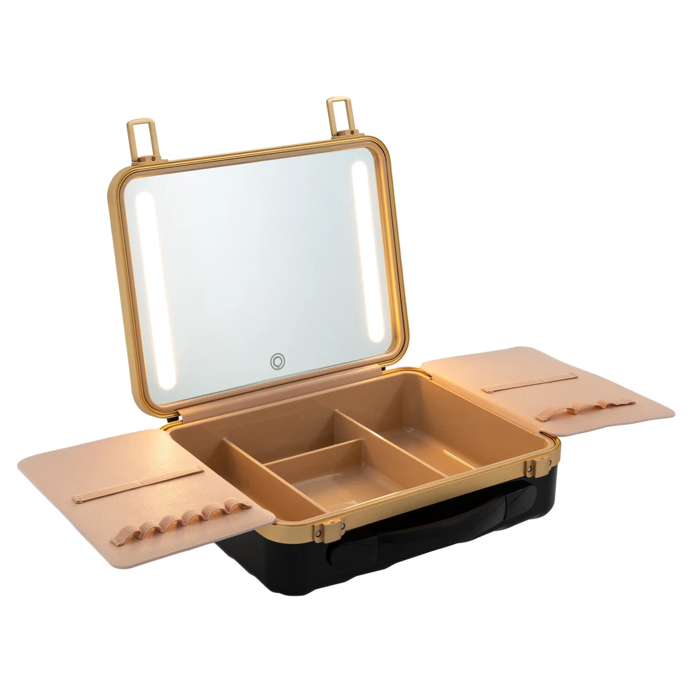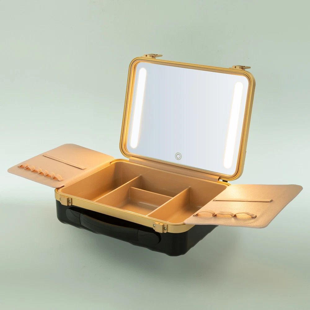 Travel Makeup Bag Case Storage USB Portable Makeup Box with LED Light & Mirror Description Description Whether you're working or traveling, a professional makeup case will be a great convenience. This portable makeup box is made of high-quality material, which is strong and durable. The compartmentalized design makes the items neatly organized, and the clear mirror and LED lights are convenient for you to apply makeup in various environments. It is ideal for professional makeup artists and cosmetologists. Key Features High-quality Material: The product is made of high-quality ABS, aluminum alloy, and silicone with the injection molding process, which is strong, pressure-resistant, waterproof, impact-resistant, corrosion-resistant, rust-resistant , and has a long service life. Categorized Storage: Four compartments inside have large storage space to categorize and organize your various cosmetics, and two baffles with elastic bands can store and secure makeup brushes, as well as prevent cosmetics from coming into contact with the mirror. Humanized Design: There is a large 4K silver-plated mirror with LED light inside the product, and the light colour can be easily adjusted/infinitely adjusted between warm light, neutral light and white light by touching/long-pressing the switch, which can help you see more details of your makeup and restore the true state of your makeup. Long Endurance: With a built-in 5000mAh rechargeable lithium battery, it can be illuminated for 4-6h after being full charged. Equipped with a USB charging cable, you can charge the product via mobile power, laptop, or adapter(not included), which is very convenient for both home and travel. Ideal Gift: With a stylish appearance and practical functions, this product is an ideal birthday and holiday gift for family, friends, fashionistas, and beauty lovers. Ready to Use: This product does not require assembly, and you can start using it once you receive it, saving the tedious installation process and making it more convenient. Effortless Cleaning: Thanks to the smooth surface and simple structure, you can easily wipe off the dirt on it with a soft cloth. Protective Packaging: The sponge can better protect your product during transportation and make it delivered to you completely to the greatest extent. Good Customer Service: We stand behind all our guests and look forward to assisting you with your purchase. It is our pleasure to answer your confusion and questions. The end of the story between us is not "we sell and you buy". Details Comfortable Handle: The silicone handle is comfortable to grip and easy to carry so that you can always keep your delicate makeup even when you are traveling. Solid Base: With 4 silicone feet on the back of the case, it can hold the product in place so that it is not easy to slide. Stable Hinges: The robust hinge makes it easy to open (up to 180°) and close without being damaged. Rounded Corners : The corners and smooth edges are designed to provide a comfortable and safer touch. Application This product is suitable for travel and home makeup use or as a jewelry case, ideal for makeup artists, hair stylists, nail technicians, and cosmetologists. Specification Color: Black Style: Modern Shape: Rectangle Material: ABS, Aluminum Alloy, Silicone Process: Injection Molding Assembly Required: No Opening Method: Buckle Power Source: Battery Powered, USB Light Source: LED Light Color: Warm, Neutral, White Battery Type: 1*5000 mAh Lithium Battery ( Included ) Charging Time: About 1-2h Endurance Time: 4-6h Maximum Opening: 180° Gross Weight: 2kg/ 4.41 lbs Net Weight: 1.6kg/ 3.53 lbs Package Size: 33*14*29 cm/ 12.99*5.51*11.42in Product Size: 29*9*22 cm/ 11.42*3.54*8.66 in Package Included 1* Portable Makeup Box 1* Chinese and English Manual 1* USB Charging Cable Notes Please note that cosmetics and make-up tools are not included. Please read the operating manual completely before use. And pay particular attention to the safety instructions included. Please allow the slight color difference caused by the shooting light and the 1-3 cm error due to manual measurement, and make sure you do not mind before ordering. Payment Delivery details Terms of sales About us Contact us Payment We accept ebay payment 。 Fees such as import duties, taxes are not included in the item price or shipping costs. These charges are the buyer's responsibility. Delivery details Shipping: 2-9 working days to: USA Terms of sales We maintain high standards of excellence and strive for hundred percent customer satisfaction. Feedback is very important to us. We hope that you contact us immediately before you give neutral or negative feedback, so that we can address your concerns. It is impossible to address issues if we do not know about them! About us Your satis faction is our ultimate goal. We work hard to earn your trust and future business. Our certified technicians have tested each item before shipping. The unit comes with 1 year limited warranty on all manufacturing defects. a) If you receive a defective item, you may return it or ask for a discount. Please contact us within 14 days after you receive the package. b) What you returned must be intact and in its original packaging as re? u. Customer is responsible for shipping costs of the returned item. c) We will cover the cost of shipping back t with the shipping rate indicated in the registration page. We will send you a new unit or refund the full payment you paid. Thank you. Contact us Business Hour Business Hour: Monday To Friday: 8:30 AM to 5:00 PM (Beijing China time) Due to time zones, our reply to your questions may not be immediately. But within above working time, we will reply your email within 24 hours. If it's non-workdays, please kindly be patient and wait till Monday. Please contact us with ebay message. Please feel free to contact us if you have any questions. Monday To Friday: 8:30 AM to 5:00 PM (Beijing China time) Due to time zones, our reply to your questi