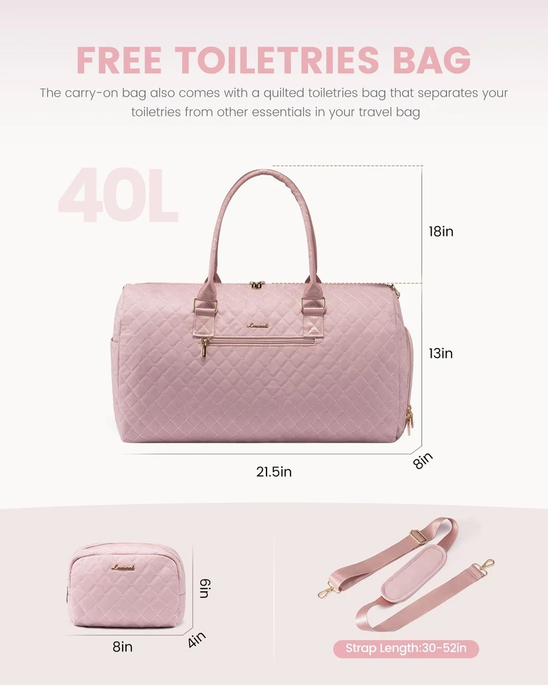 Travel Duffle Bag, Weekender Bag for Women with Toiletry Bag, Carry on Overnight Bag with Shoe Compartment, Gym Duffel Bag with Wet Pocket, Mommy Hospital Bags for Labor and Delivery 【TRAVEL TOTE BAG WITH SHOE COMPARTMENT+FREE SEPERATE TOILETRY BAG】: 1. comes with a $15 toiletry bag 2. comes with adjustable & detachable sling strap and handles.This is 's latest upgrade combination travel duffel bag set: adds seperate shoe compartment & toiletry bag, the shoe compartment of this travel bags for womencan hold your shoes or dirty clothes for easy separation from clean clothes when traveling. 【CARRY ON BAGS FOR AIRPLANES】:Sizes- 21 x 8 x 13 inch,2.6Lbs, duffle bag for women meets most international carry-on requirements.Fits in the overhead compartment as well as the under seat as Personal Items in flight.Integrated trolley sleeve slides over rolling luggage handle making airport travel a breeze.One zippered pocket on the back to hold your smart phone, IDs or passport.Your ideal overnight weekend boarding bag for business or personal travel. 【STYLISH WEEKEND BAG & OVERNIGHT BAG FOR WOMEN】:With a total of 7 pockets and 1 compartments,Roomy space can even fit in 3-5 days of daily essentials,Easily fit into your clothes,toiletries,shoes,laptop,Ipad and other items.In the front of the duffle bag for travel, there is a pocket for easy access electronics or travel materials.Featuring with classy and gorgeous appearance, Our travel duffel bags reach morden urban ladies greatest demand and fantasy on travel bag. 【DRY WET SEPARATED GYM BAG & HOSPITAL BAG】:The high density water resistant material can help you to separate dry items and wet items,if you have wet clothes or towel,you can put it in this gym bag for women.Our womens gym bag is a perfect reliable companion for both indoor and outdoor sports.It is perfect for workout,travel,tennis,basketball,yoga,swimming,camping and many outdoor activities. It can also be used as a medical bag,hospital bag and mommy bag. 【MULTIPURPOSE DUFFEL BAG & PERFECT SERVICE】:Use it as a duffel bags for traveling,personal item travel bag,mommy bag for hospital,weekend bag for women, gym bags for women, carry on bag, or laptop bag.,it can also be used as a Christmas gift,suitable for family, friends, and partners.With 's reliable after-sales service and fine craftsmanship, We promise that if you are not satisfied within one month, you can unconditionally. Why Choose traveling bag? carry on duffel bag can be carried in a variety of different ways. It can be used as a business trip bag with its handles or as a Travel weekend bag for short trips. Whether you are a college, fitness enthusiast or professional business woman, don't forget to exercise and eat healthy to keep fit. Specifications: Size: 21 x 8 x 13inch Weight: 2.6 lbs; High-Quality Material: Quilted Nylon Fabric (Waterproof & Light-Weight ) Best Uses: Gift, yoga, work, business trips, traveling, sport, beach, camping. Features: ● Laptop pocket- for up to 15.6" laptop ● Large main compartment- storage clothes, shoes and other work or travel accessories ● Dry Wet Separated Pocket- Separate dry and wet items, can put toiletries, towels ● Independent Shoe Compartment- Perfectly separate your dirty shoes or clean clothes ● Front/Back easy access zipper pocket- small accessorie,passport,cell phone ● Side pockets- can hold your large water bottle or umbrella Shipping We offer FREE shipping on all orders! We ship within Three business days of payment, usually sooner. We use a selection of shipping services such as UPS, FedEx, USPS etc. We only ship to the lower 48 states, no APO/FPO addresses or PO Boxes allowed. Local pickups and combined shipping options are not provided at this time. Return You can return a product for up to 30 days from the date you purchased it. Any product you return must be in the same condition you received it and in the original packaging. Please keep the receipt. Payment We accept payment by any of the following methods: PayPal Please pay as soon as possible after winning an auction, as that will allow us to post your item to you sooner! Feedback Customer satisfaction is very important to us. If you have any problem with your order, please contact us and we will do our best to make you satisfied. Contact Us If you have any queries, please contact us via ebay. We usually respond within 24 hours on weekdays. Please visit our eBay store to check out other items for sale! Thank you for shopping at our store.