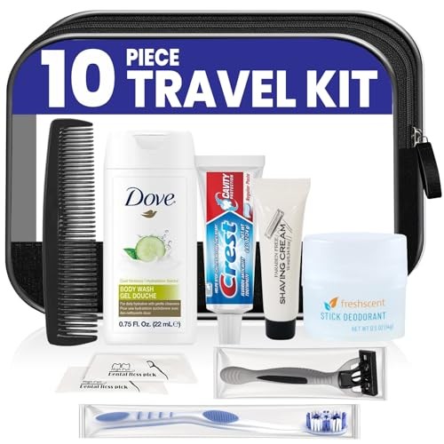 All-In-One 10-Piece Travel Hygiene Kit: Includes travel size toiletries and dental essentials such as body wash, deodorant, shaving cream and razor, toothbrush, toothpaste, and grooming accessories. TSA-Compliant & Carry-On Ready: Travel size items designed to meet standard carry-on requirements, ideal for flights, weekend trips, and frequent travelers. Compact, Reusable Toiletry Bag: Each kit is packed in a clear, zippered cosmetic bag that is lightweight, durable, and easy to organize for travel or storage. Perfect for Travel, Emergencies & Giving Back: Suitable for personal travel, guest use, emergency preparedness, and as a ready-made blessing bag for local charities, homeless shelters, and disaster relief efforts. Single or Bulk Pack Options Available: Offered as individual kits or bulk packs for group travel, outreach programs, events, and community organizations, with each kit arriving pre-assembled and ready to distribute. Ready to Use & Pre-Assembled: No sorting or assembly required, each kit is packed and ready to go right out of the box.