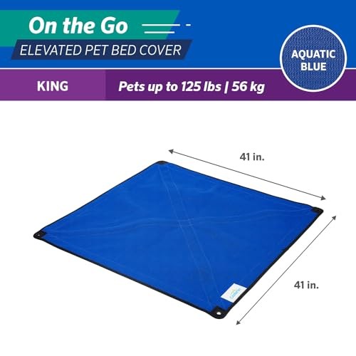 Brand Name: Does Not Apply Included Components: Replacement Pet Bed Cover Type: Does Not Apply Size: King Item model number: 500061 Item Length: 11.77 Color: Aquatic Blur Breed Recommendation: Large Breeds Specific Uses for Product: Outdoor, Indoor Material: High Density Polyethylene (HDPE), Powder Coated Steel Item Weight: 1.76 pounds Age Range Description: All Life Stages Product Dimensions: 41 x 41 x 11.5 inches; 1.76 Pounds Item Width: 11.1 Item Package Dimensions L x W x H: 11.77 x 11.1 x 2.72 inches Model Name: On The Go Elevated Pet Bed Warranty Description: 7 year limited fabric, 1 year limited hardware Date First Available: March 15, 2022 Item Dimensions LxWxH: 41 x 41 x 11.5 inches EAN: Does Not Apply UPC: Does Not Apply Brand: Does Not Apply Manufacturer: Does Not Apply gtin13: Does Not Apply Number of Items: 1 Country of Origin: China MPN: Does Not Apply Item Height: 2.72 Target Audience Keyword: Cats, Small Animals, Dogs