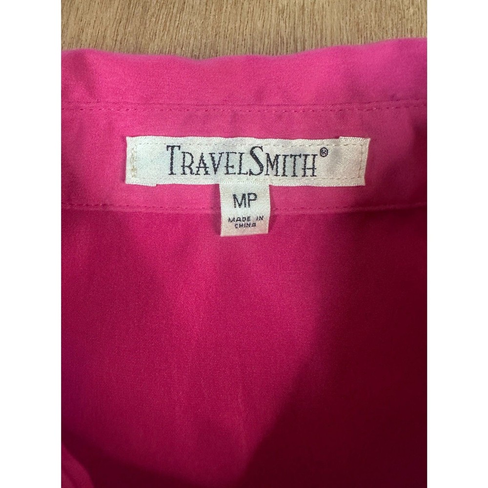 TravelSmith lightweight blouse in a vibrant pink color. Designed for travel and everyday comfort with an easy, relaxed fit and soft drape. Wrinkle-resistant fabric makes it ideal for packing, work, or casual wear. Size MP (Medium Petite). Features Brand: TravelSmith Size: MP (Medium Petite) Color: Bright Pink 100% Polyester Lightweight travel fabric Easy care / wrinkle-resistant Long sleeves Relaxed fit Rounded hem Condition Pre-owned. Good overall condition with normal light wear. No major flaws noted. Please review photos. #TravelSmith #PetiteStyle #TravelBlouse #WomensWorkwear 1504