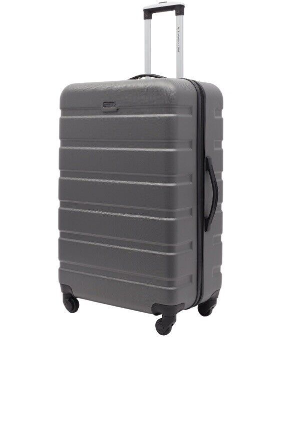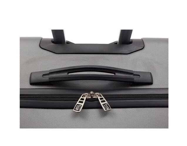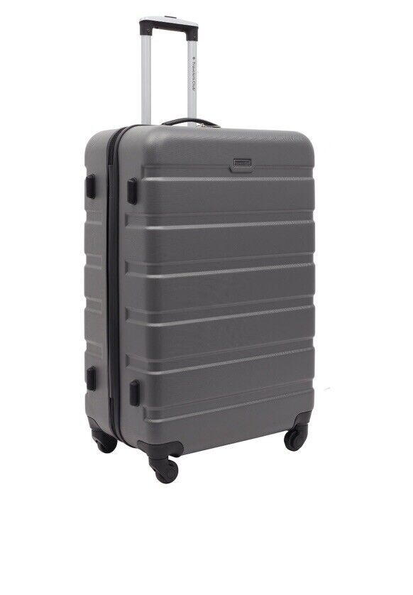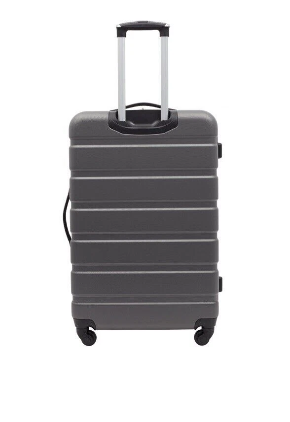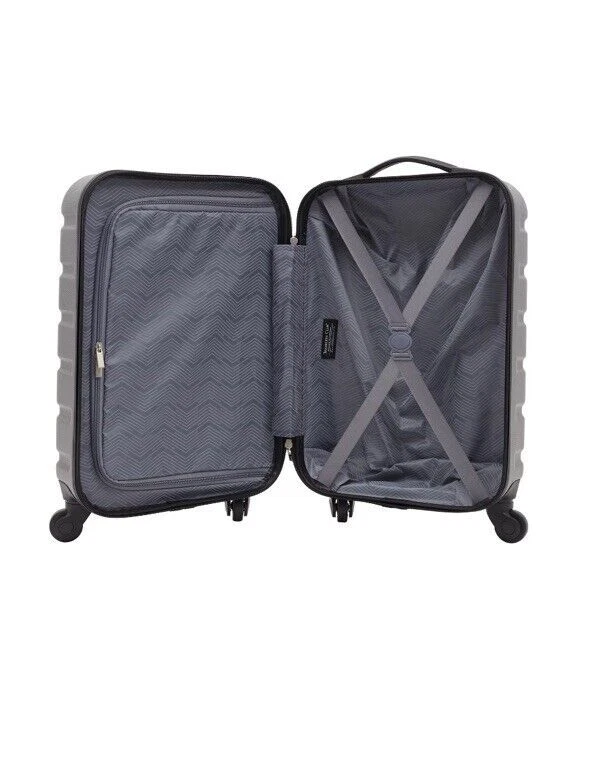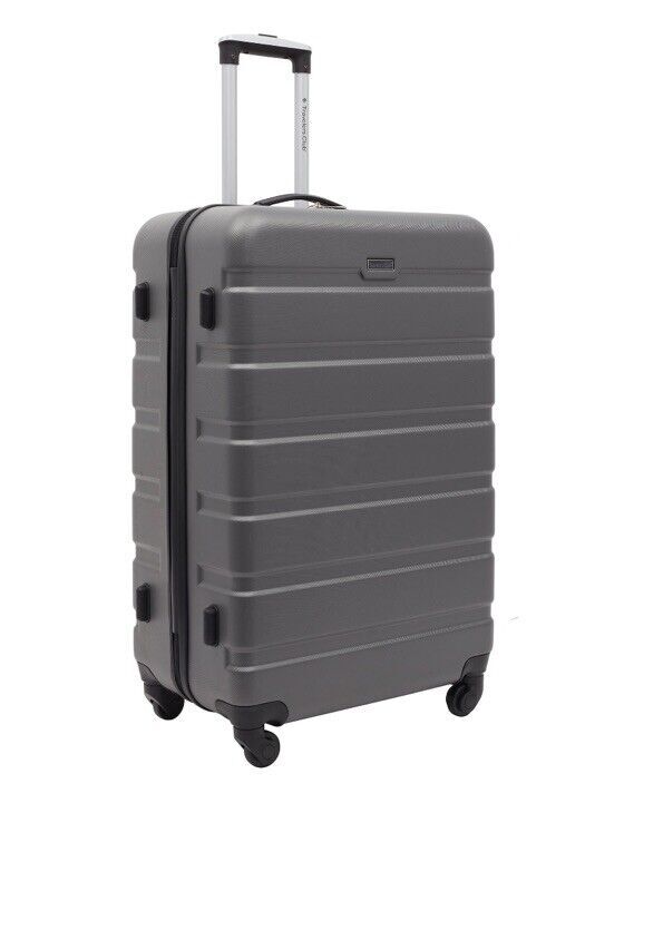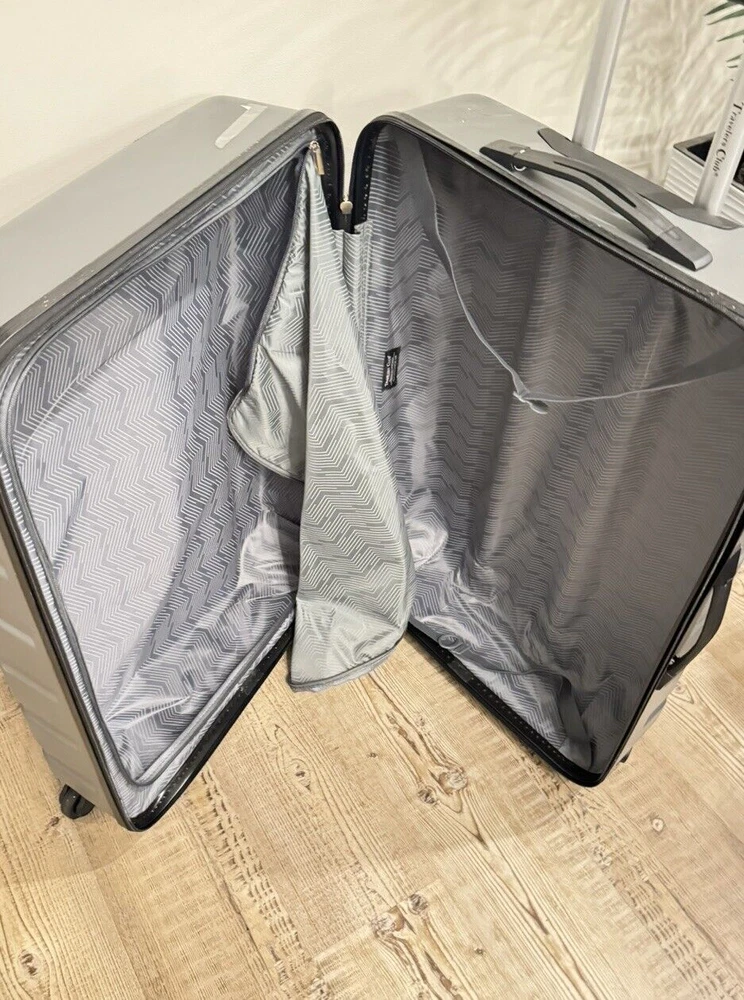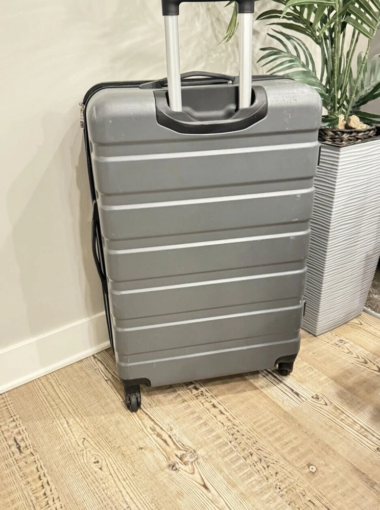 Used once, minor scratches. All zippers and wheels are working properly Harper ABS spinner luggage travel. This travel set features a 28" rolling upright with 4 spinner wheels . Both have a locking telescopic handle, top carry handle, a fully lined interior along with a compartment to separate your clothing. The 28" measures with the wheels, 30" x 18" x 13" and weighs only 9 lbs. Ideal for a week or more during your travels and meets airline check-in requirements. Listing and template services provided by inkFrog