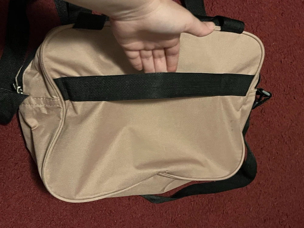 Rose gold colored boarding tote. Tote features a back strap that can attach onto luggage trolleys. The material is deteriorating a bit due to the material, but the bag is still 100% functional. It works and looks as it should. Bag is really spacious, great for travel and being on the go. Comes from pet free and smoke free home:
