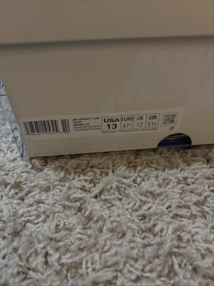The product is a pair of Travis Scott Air Jordan 1 Low Fragment sneakers in size 13. These sneakers feature a lace-up closure, low-top silhouette, and leather upper material with a rubber outsole. They are designed for casual occasions and have a retro theme, with a solid ivory color and standard shoe width. The shoes offer comfort and are part of the Air Jordan product line, making them a stylish and high-quality choice for men's athletic footwear. OG all Only taken the left shoe out of the box