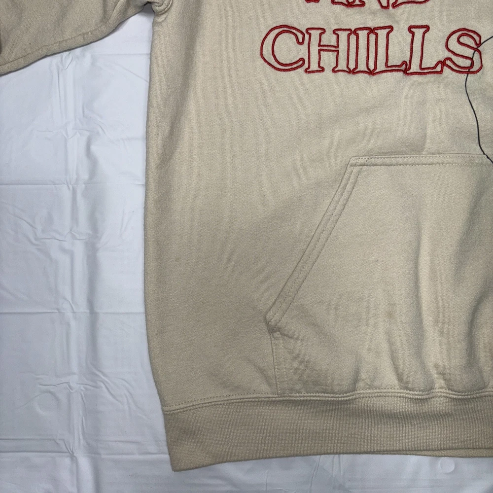 The hoodie is a size M and is perfect for men who want to show off their love for Travis Scott. It is ideal for casual wear and is sure to turn heads wherever you go. So, if you want to stay warm and stylish while showing off your love for one of the most popular rappers in the world, this hoodie is the perfect choice. The hoodie is used comes in size M ..we tried to put everything in the picture so everything can be visible ..they are some small marks and spot but still the hoodie is in good condition to any fan or collector …and very warm also ☺️ Please before purchase feel free to reach out to us for any questions or to post more pictures 🙂