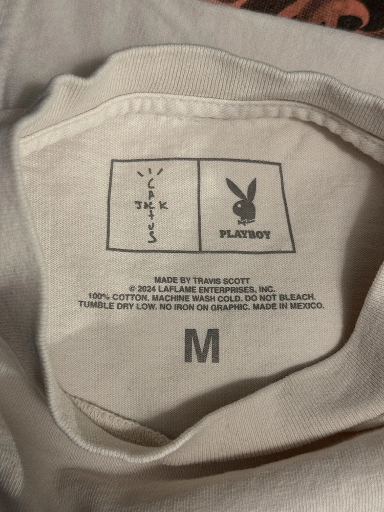 Get ready to show off your unique style with this limited edition Travis Scott x Playboy 2024 Las Vegas ComplexCon Exclusive Tee. This white tee features a graphic print of the iconic Bunny character and logo all made with high-quality cotton material. The tagless design adds to the comfort of the tee, making it perfect for any occasion.