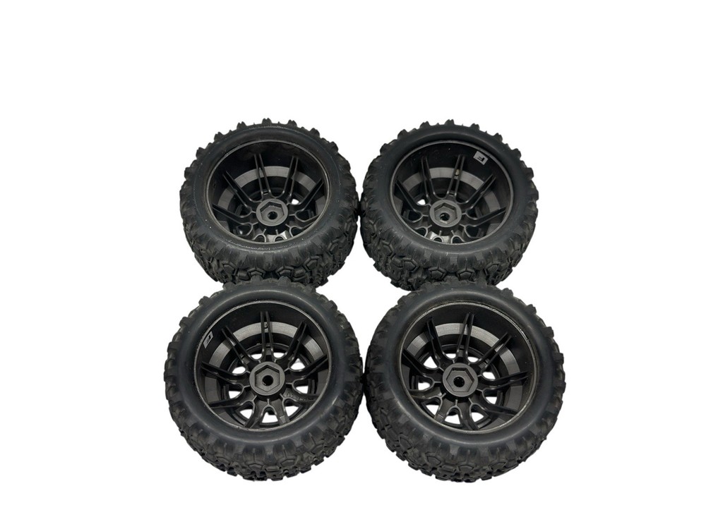Traxxas Mini-Maxx Sledgehammer Mini Monster Truck Tires & Wheels Set of 4 – Part #16004 Condition: Used This set includes four Traxxas Mini-Maxx Sledgehammer tires mounted on wheels. The tires feature excellent tread, providing great traction and performance. Wheel hexes are in perfect condition, ensuring a secure fit. Ideal for replacement or upgrade on your Mini-Maxx mini monster truck. Shipping & Handling: • Orders ship within 24 hours of payment (excluding weekends and holidays) • Standard shipping via USPS, UPS, or FedEx • Packaged securely for safe delivery Please Note: • All RC products are sold as-is • Feel free to message us with any questions before purchasing Check out our store for more RC parts and vehicles!