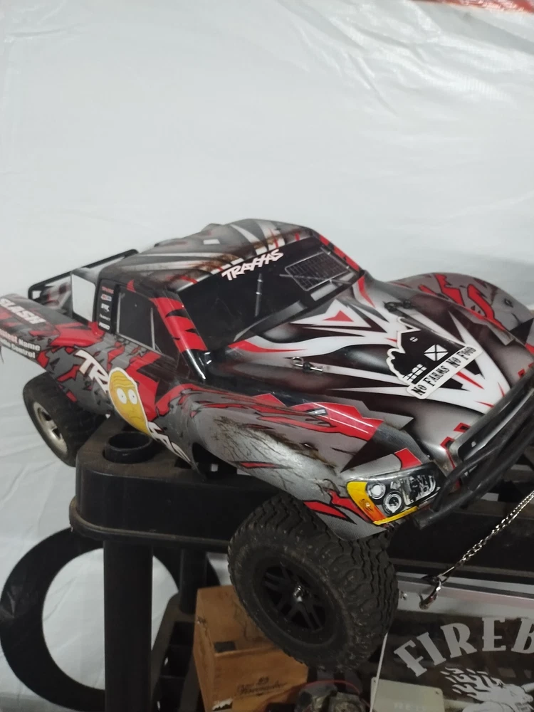 Upgraded with brushless motor Traxxas slash 2wd Aftermarket esc Aftermarket brushless motor As is Working condition. Includes aftermarket transmitter and receiver with gyro Get ready for some serious off-road action with this Traxxas Slash 2Wd 1/10 Short Course Racing Truck in red. This electric-powered truck is perfect for those who love high-speed racing and tough terrain. With a brushed motor and 2WD capabilities, this truck can handle anything you throw its way. The Slash product line from Traxxas is known for its quality and durability, and this model is no exception. It comes fully assembled and is ready to go right out of the box. The California Prop 65 Warning ensures that you are aware of any potential hazards while operating the truck. This short course truck is a must-have for any RC enthusiast looking for an exciting and challenging experience.