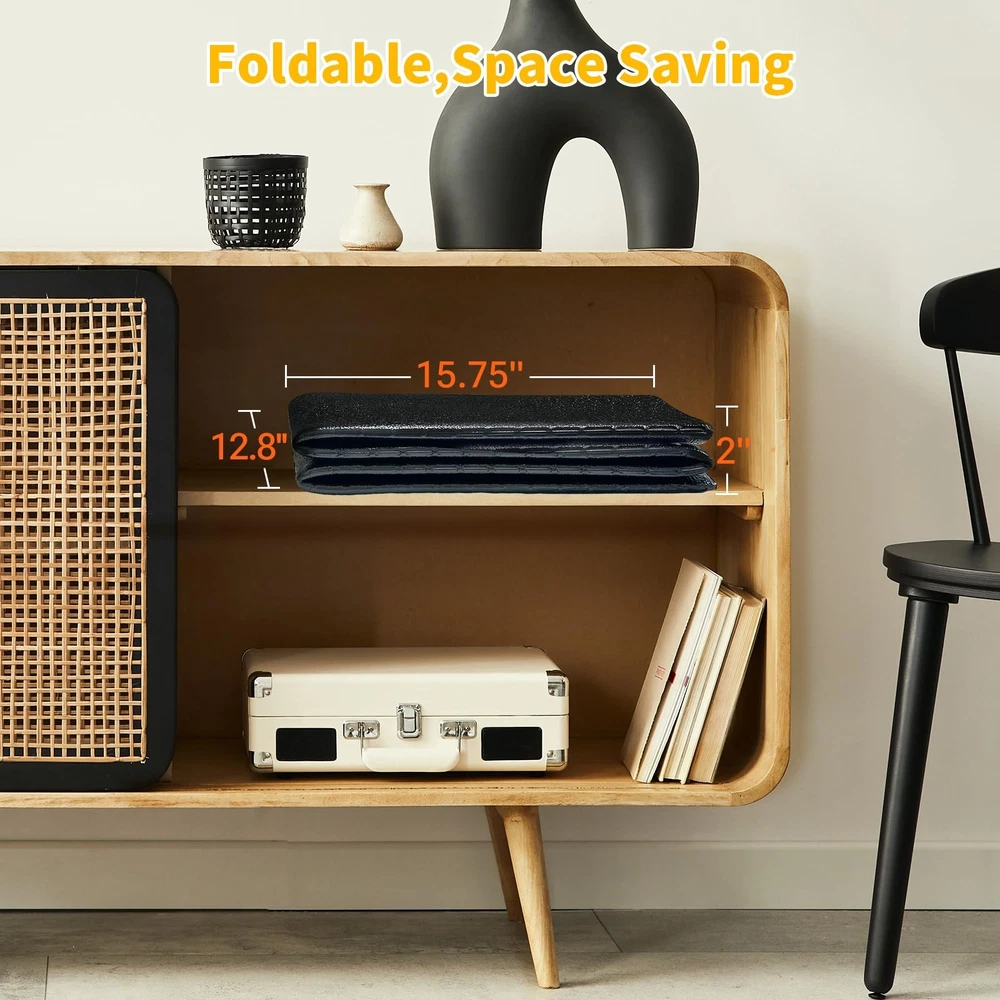 โFoldable, durable mat with shock absorption protects floors and equipment while offering waterproof, sweatproof convenience during various exercises. ๐ ๐จ๐ฅ๐๐๐๐ฅ๐ ๐๐ง๐ ๐๐ฉ๐๐๐-๐๐๐ฏ๐ข๐ง๐ : This foldable exercise mat easier to store and carry than traditional exercise mats, and you can take it anywhere. Unfolding to dimensions of 63" x 25.6" x 0.24" and folding down to 15.75" x 12.8" x 2", it can easily fit into a cabinet or backpack ๐๐ข๐ ๐ก ๐๐๐ง๐ฌ๐ข๐ญ๐ฒ ๐๐ง๐ ๐๐ฎ๐ซ๐๐๐ฅ๐: Made of high-density PVC material with unmatched durability and cushioning to withstand heavy fitness equipment. It fully protects floors and carpets while extending the lifespan of your fitness gear ๐๐ก๐จ๐๐ค ๐๐๐ฌ๐จ๐ซ๐ฉ๐ญ๐ข๐จ๐ง ๐๐ง๐ ๐๐ง๐ญ๐ข-๐๐ฅ๐ข๐ฉ: The exercise mats feature shock absorption to reduce vibration and noise during workouts. The bottom of the mat is designed with anti-slip properties, which can make the fitness equipment more stable and the exercise safer ๐๐๐ญ๐๐ซ๐ฉ๐ซ๐จ๐จ๐ ๐๐ง๐ ๐๐๐ฌ๐ฒ ๐ญ๐จ ๐๐ฅ๐๐๐ง: The surface of the treadmill mat is designed to be 100% waterproof, which can prevent sweat or water droplets from sticking to carpets and wooden floors. Simply wipe off the sweat with a towel or cloth, making it easy to clean ๐๐ฎ๐ฅ๐ญ๐ข๐๐ฎ๐ง๐๐ญ๐ข๐จ๐ง๐๐ฅ ๐๐ฑ๐๐ซ๐๐ข๐ฌ๐ ๐๐๐ญ: This exercise mat can be used as both a protective mat for flooring and fitness equipment. Its foldable, waterproof, and sweatproof design makes it suitable for various exercises, including yoga and aerobic training. mat for aerobic training