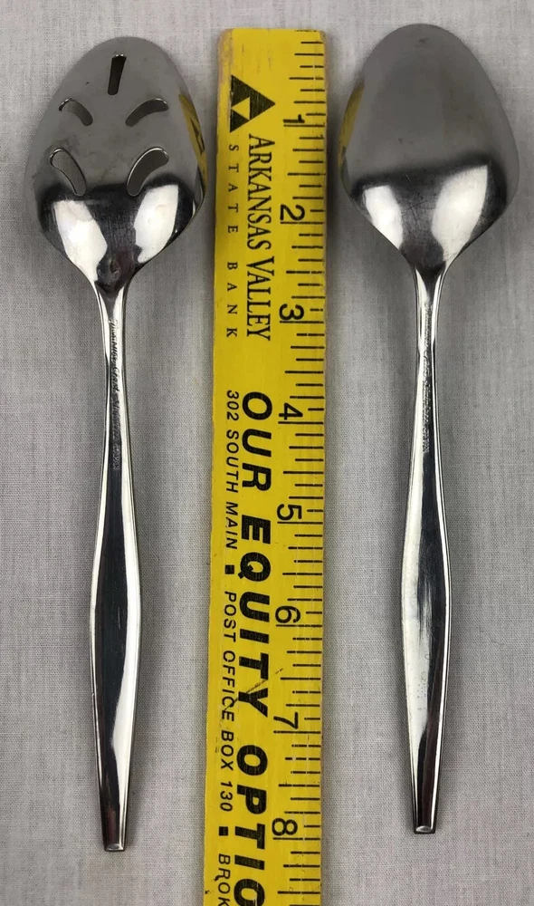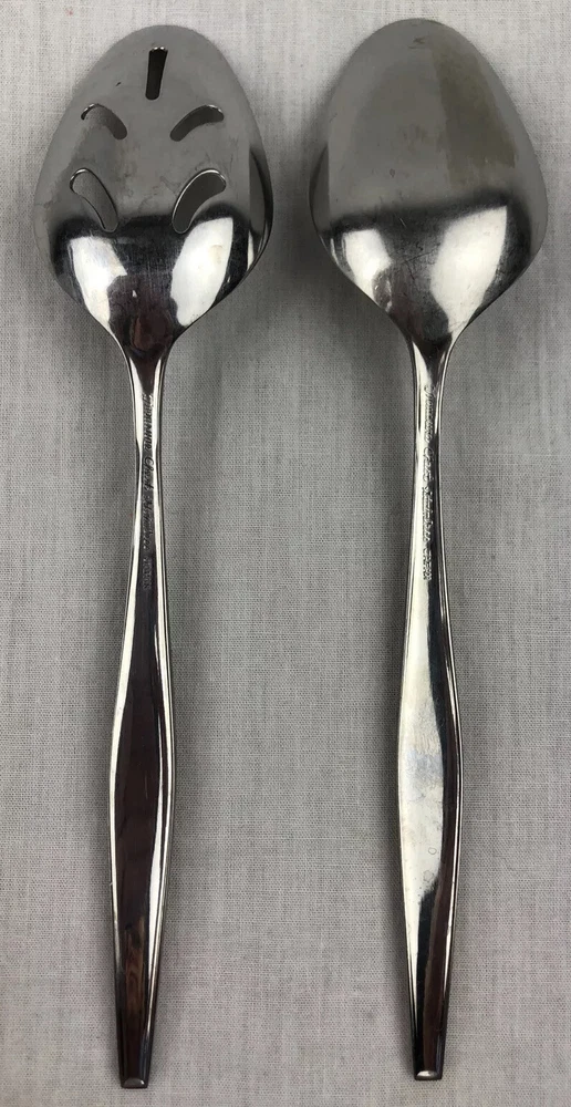 Vintage Treasure Chest TCS4 Stainless Flatware 2 Piece Lot Includes: 1 Pierced Serving Spoon 1 Solid Serving Spoon Shows signs of light use and may need additional cleaning. Little spotting in places but no dishwasher or disposal damage. Overall very nice condition. Please see pictures for details as this is part of my description.