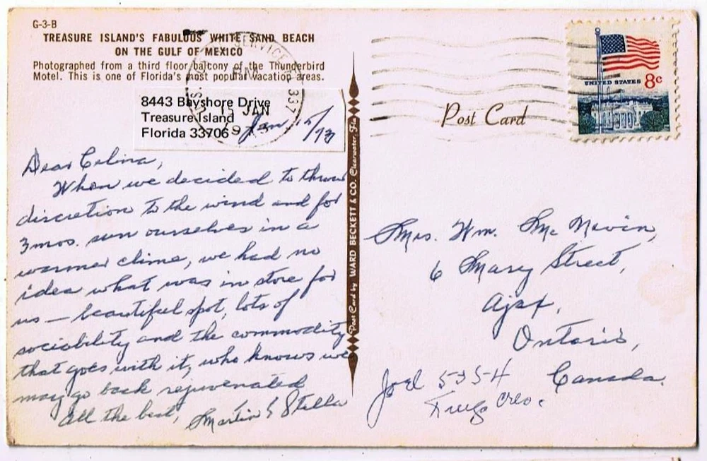 Treasure Island Florida Postcard Fabulous White Sand Beach Gulf of Mexico Treasure Island Florida Postcard Fabulous White Sand Beach Gulf of Mexico Very Good Vintage Postcard. See scans for edgewear (if any). Mailing on extra postcards is 25 cents each Will combine shipping costs on multiple items. Wait for invoice before paying. WE ANSWER ALL QUESTIONS WITHIN 2 BUSINESS DAYS. FOR AUCTION ITEMS, PLEASE DO NOT BID UNTIL WE HAVE RESPONDED TO YOUR QUESTION. PLEASE LOOK AT ALL PHOTOS AS THIS IS THE EXACT ITEM YOU ARE BIDDING ON OR PURCHASING. EXPECT ITEMS TO BE IN NORMAL VINTAGE USED CONDITION. WE TRY TO SPECIFY ALL FLAWS. IF THERE IS A PROBLEM WHEN YOU RECEIVE YOUR ITEM PLEASE CONTACT US BEFORE LEAVING FEEDBACK. INTERNATIONAL BUYERS are responsible for paying all import duty, tax and fees which may be collected by your country when the parcel arrives. To avoid any misunderstanding, we declare the exact purchase price as the value of the goods when completing the customs declaration. We will NOT check the "gift" box or under-declare the value . Listing and template services provided by inkFrog