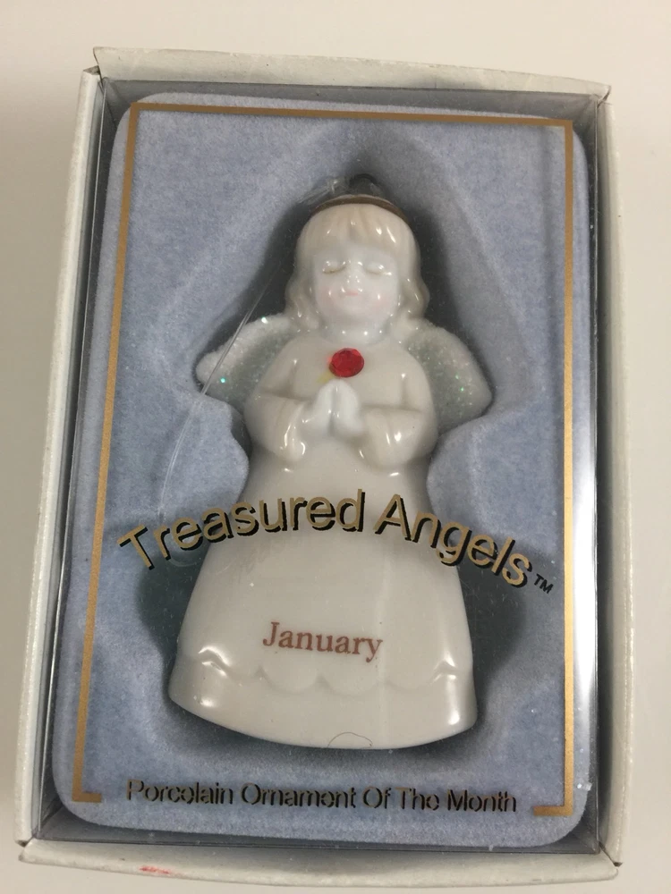Treasured Angels Porcelain Ornament Of The Month- January New measures approx 2.75" MANY MORE ITEMS AVAILABLE IN OUR EBAY STORE! BUY MORE AND SHIP ITEMS TOGETHER. Be sure to add me to your favorites list ! Track Page Views With Auctiva's FREE Counter