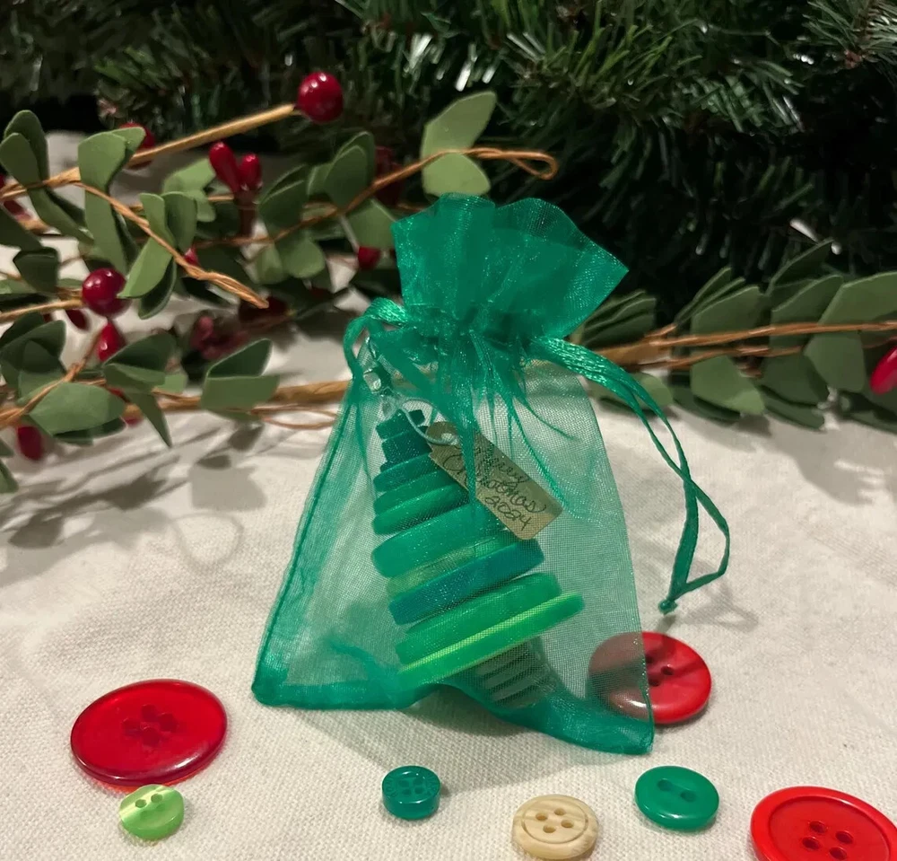 Add a touch of nature to your holiday decor with this beautiful Tree Button Ornament. Crafted with care, this small ornament is a perfect addition to any tree or plant display. The intricate design and attention to detail make it a unique and eye-catching piece that will bring a touch of elegance to your home or office. Ideal for use as an office gift or for adding a touch of personalization to your holiday decor, this Tree Button Ornament is a must-have for any tree lover. Its handmade construction ensures that each ornament is one-of-a-kind, with a unique mix of colors and textures that will make it stand out among other ornaments. Whether you're decorating your home or office, this small ornament is sure to make a big impact.