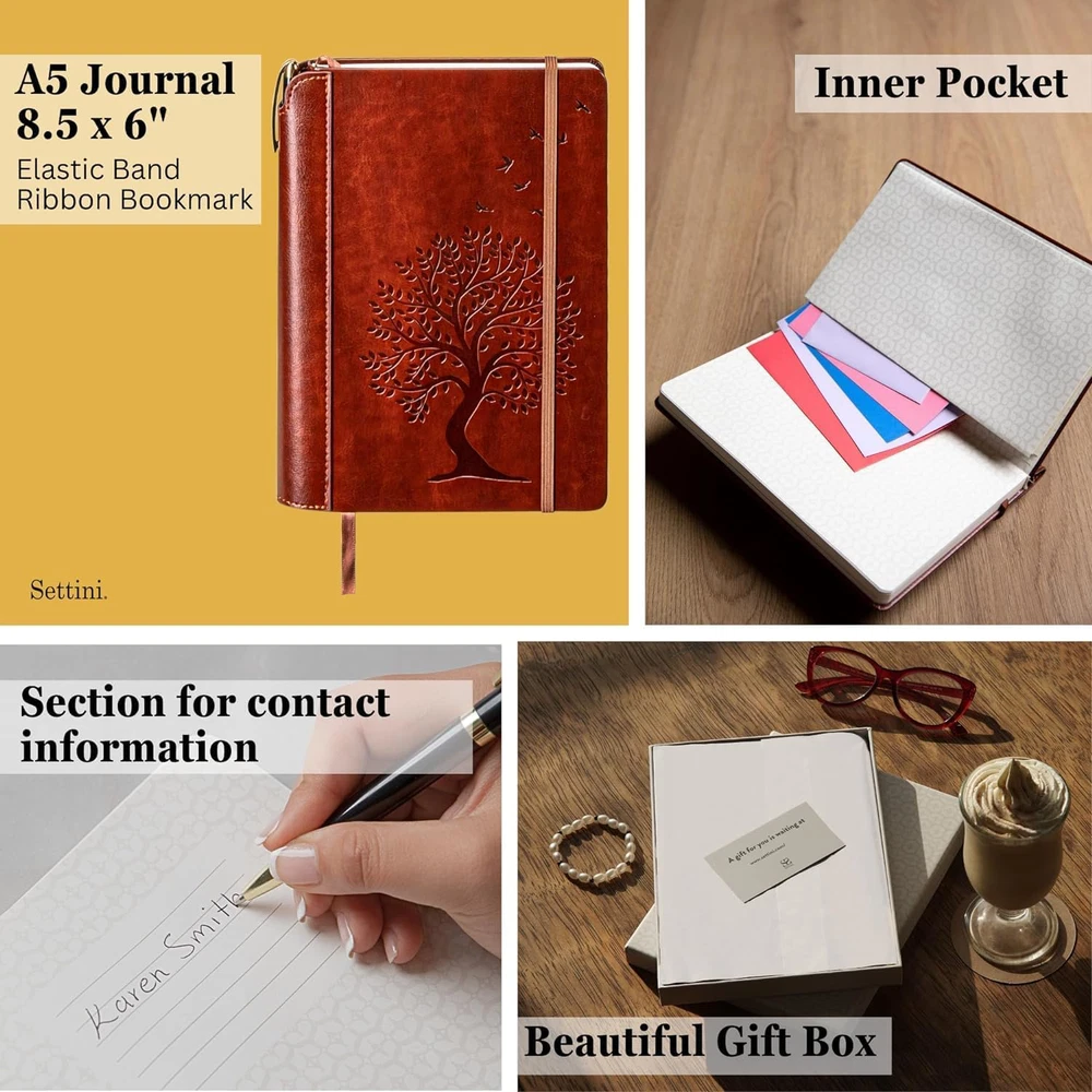 Fast Shipping Great Customer Support Satisfaction Guaranteed DESCRIPTION Shipping Shipping Shipping All domestic packages are shipped for Free (Unless other shipping method was selected during the checkout) Most items ship and arrive much sooner than the estimate delivery date. Usually within 2-3 days from payment. However, we have longer estimates to compensate for the occasional delay or supply chain breakdown. We do not accept P.O. BOXES - PLEASE PROVIDE A PHYSICAL ADDRESS Return Return Return In the event that you would like to return your purchase, we allow returns that are processed within the defined return date (the return date is to be found in the return policy/shipping and handling section) Please contact us for a return authorization and the return shipping address. Payment Payment Payment PayPal is our preferred method of payments it's the quickest, easiest and most secure way to pay for your goods or services online. PayPal offers buyer and seller protection should there be a problem. If you do not have a PayPal account, to get started and buy your first item with us is very easy. Simply click on the 'Buy It Now' button and follow the eBay checkout steps. Select PayPal as the payment method you then will be given the chance to enter your card details in to PayPal's secure checkout in order to pay for your order. Once the payment has been made, you will then be given the opportunity to make your own PayPal account to make paying for your items in the future very easy. Should there be a problem with payment please do let us know. Feedback Feedback Feedback Customer satisfaction is very important to us. If you have any problem with your order,please contact us and we will do our best to make you satisfied, please do not leave a negative feedback before we resolve your problem. We guarantee that your issue will be solved quickly. As long as you are happy with your purchase of , please leave us a positive feedback. Your feedback is very important to us it affects our search placement on eBay. We will leave a positive feedback for you in return automatically once we receive your feedback. Contact Us Contact Us Contact Us If you have any queries, please contact us via ebay. We usually respond within 24 hours on weekdays. Thank you for visiting our ebay store! Ideal Christmas Gift. Vegan Leatherbound Writing Journal with Tree of Life Design: Beautifully embossed, cruelty-free vegan leather cover, fine stitching, and unique spine as pen holder. Journal for Women and Men, symbolizes growth and wisdom, measures over 6"x8", perfect for jotting down thoughts and dreams. This journal leather set comes with a luxurious Settini Milano Pen, a black lacquered metal pen with gold trim, a brass barrel, a hinge clip, and a twist-action mechanism. It comes with a black German Ink refill (compatible with Parker Style) and a 1.0 mm tip size for precision writing. Perfect for documenting your journeys in this tree of life journal for writing. Streamlined features for convenience and functionality: safeguard your contents with the robust closure strap, effortlessly find your page with the ribbon bookmark, and store small items in the inner pocket. High-quality acid-free paper for long-lasting memories: Our leatherbound writing journal contains 192 pages of 80gsm paper. The bleed-resistant pages are perfect for journaling, sketching, or keeping notes, ensuring your memories are preserved. An exquisite gift for any occasion: encased in an elegant gift box, this all-leather brown leatherbound writing journal makes a luxurious gift for Valentine's, birthdays, anniversaries, bible studies, or any special event. Its unique design is appreciated by writers, professionals, and creatives alike. Tree of Life Journal Gift Set - Hardcover Vegan Leather, 192 Pages, Includes Pen Click here to see description Fast Shipping Great Customer Support Satisfaction Guaranteed DESCRIPTION Shipping All domestic packages are shipped for Free (Unless other shipping method was selected during the checkout) We ship within two business days of payment, usually sooner Standard FREE shipping takes between 3-5 business days Expedited shipping takes between 2-3 business days Overnight shipping takes between 1-2 business days We do not accept P.O. BOXES - PLEASE PROVIDE A PHYSICAL ADDRESS We Ship Globally using ebay's GSP, the item is sent to a logistic center in KY and shipped from there to the rest of the world. International customers are responsible for all duties and taxes Contact your local authority for questions related to the amount of duties or taxes you will be responsible for Return In the event that you would like to return your purchase, we allow returns that are processed within the defined return date (the return date is to be found in the return policy/shipping and handling section) Please contact us for a return authorization and the return shipping address. Please contact us for a Return Merchandise Authorization (RMA) number. We advise you to use a reputable carrier service when returning your goods. Please pack all returns appropriately. We ship globally Via eBay's global shipping program (GSP). Thus we don't cover returns for items shipped globally. Buyers returning such items will be refunded ONLY for the item's cost and not for the shipping. please check the Voltage information and make sure it matches the one in your country. In case it's not stated in the description, do ask us. Payment PayPal is our preferred method of payments it's the quickest, easiest and most secure way to pay for your goods or services online. PayPal offers buyer and seller protection should there be a problem. If you do not have a PayPal account, to get started and buy your first item with us is very easy. Simply click on the 'Buy It Now' button and follow the eBay checkout steps. Select PayPal as the payment method you then will be given the chance to enter your card details in to PayPal's secure checkout in order to pay for your or